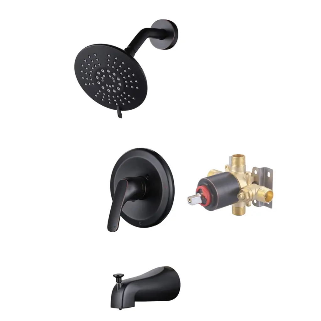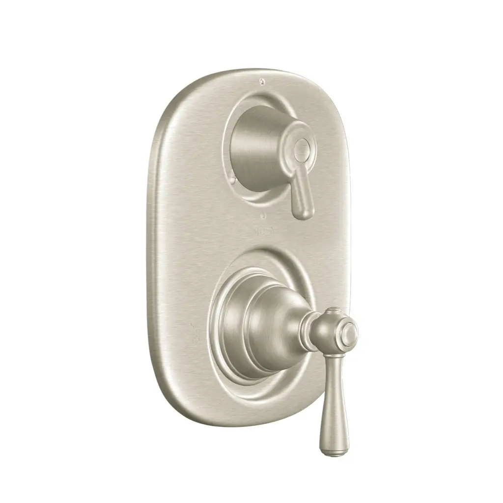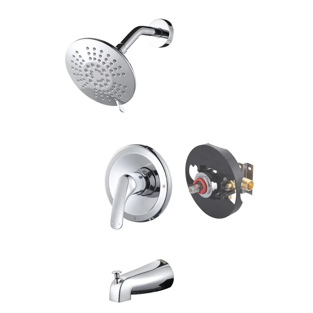 This lever handle, diverter valve and face plate help direct water to divert into three different ways, usually for the shower head, hand shower or tub spout. Each component is crafted with solid brass for durable long-term use. The diverter valve features one inlet to three outlets, to move water to its desired destination. Easy to install, the diverter is usable with hot and cold water and complies with other modern designs.Features1 inlet 3 outlets for added versatilityIn-wall installation1/2-14 NPT female inlet connection4-5/16" faceplate diameterSingle lever handle meets ADA guidelinesCorrosion-resistant finishDesigned for long-lasting durability