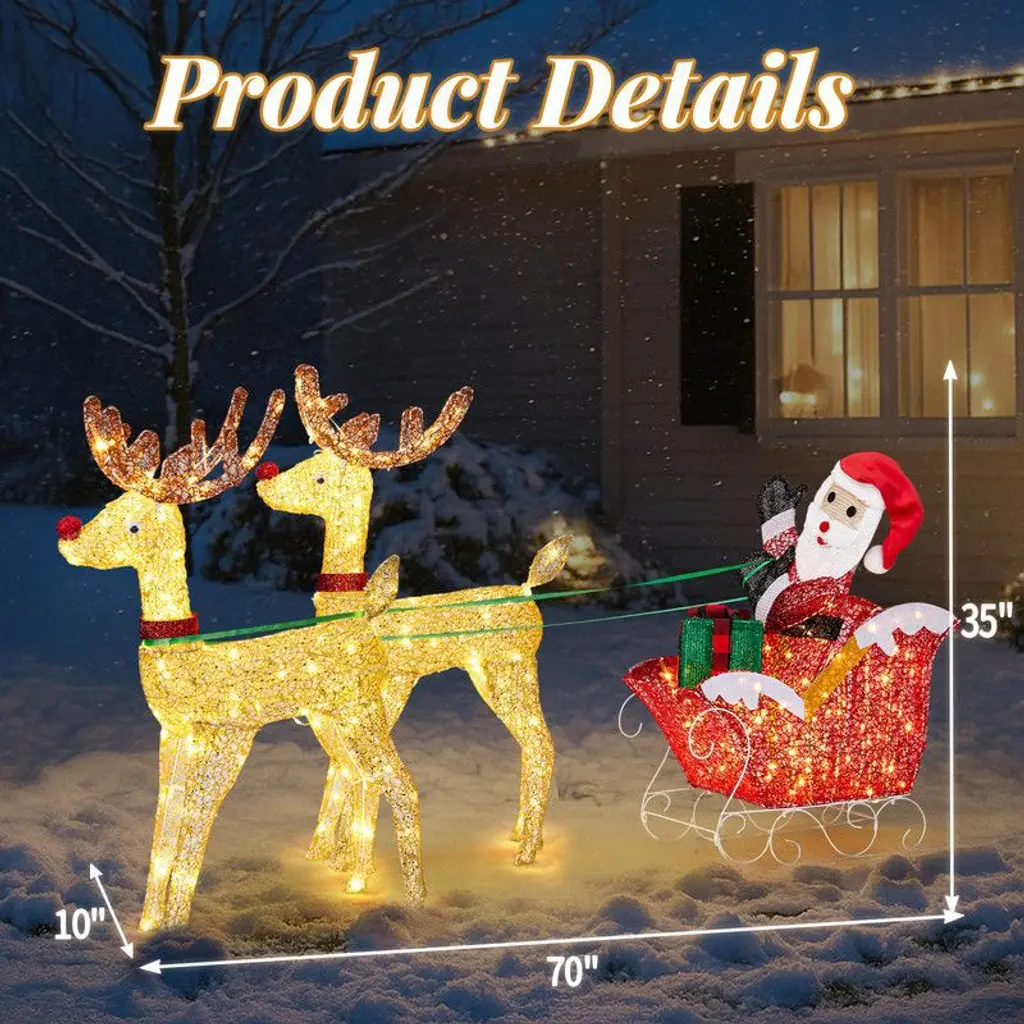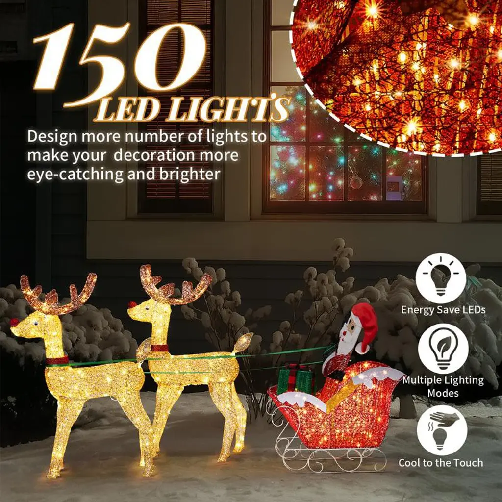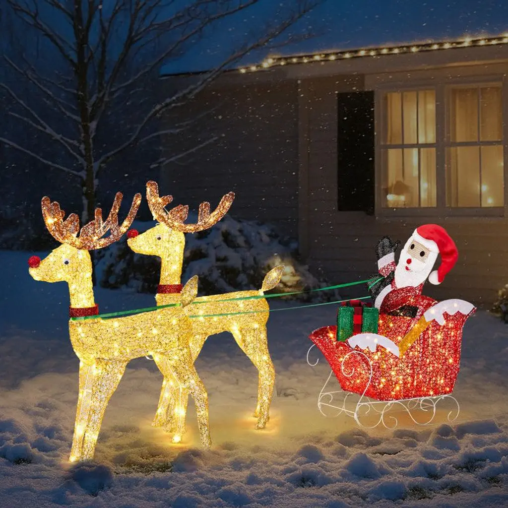 Bring the magic of Christmas to life with our 2D Reindeer Pulling Santa Sleigh Christmas Lights! This enchanting decoration features a charming reindeer pulling Santa’s sleigh, crafted with intricate stitched fabric and warm white LED lights for a cozy, festive glow. The sprinkled powder net fabric adds a dreamy, snowy effect, making it perfect for holiday displays. Easy to hang indoors or outdoors, these lights will instantly brighten your home, tree, or porch, creating a warm and whimsical holiday atmosphere.