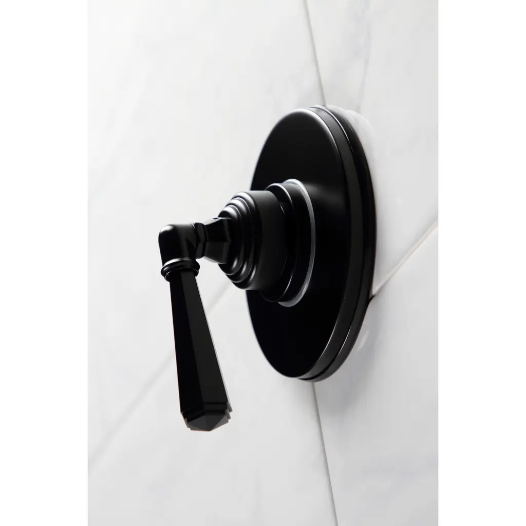 This lever handle, diverter valve and face plate help direct water to divert into three different ways, usually for the shower head, hand shower or tub spout. Each component is crafted with solid brass for durable long-term use. The diverter valve features one inlet to three outlets, to move water to its desired destination. Easy to install, the diverter is usable with hot and cold water and complies with other modern designs.Features1 inlet 3 outlets for added versatilityIn-wall installation1/2-14 NPT female inlet connection4-5/16" faceplate diameterSingle lever handle meets ADA guidelinesCorrosion-resistant finishDesigned for long-lasting durability