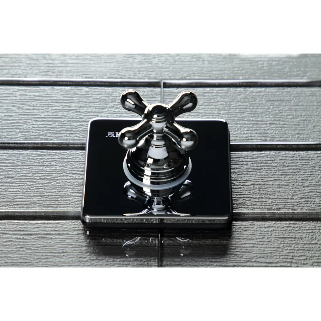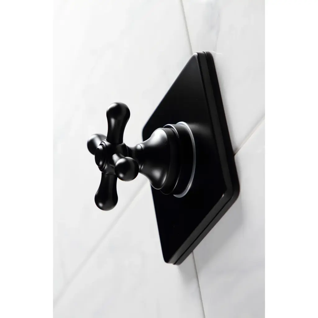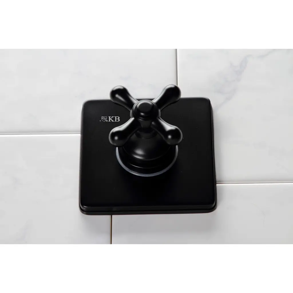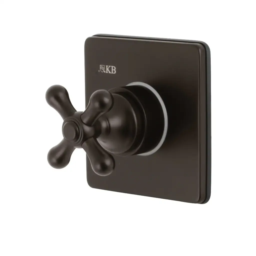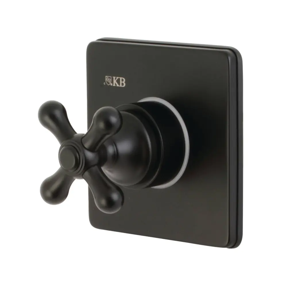 This cross handle, diverter valve and face plate help direct water to divert into three different ways, usually for the shower head, hand shower or tub spout. Each component is crafted with solid brass for durable long-term use. The diverter valve features one inlet to three outlets, to move water to its desired destination. Easy to install, the diverter is usable with hot and cold water and complies with other traditional designs.Features1 inlet 3 outlets for added versatilityIn-wall installation1/2-14 NPT female inlet connection4-5/16" square shower faceplateSingle cross handle for easy operationCorrosion-resistant finishDesigned for long-lasting durability