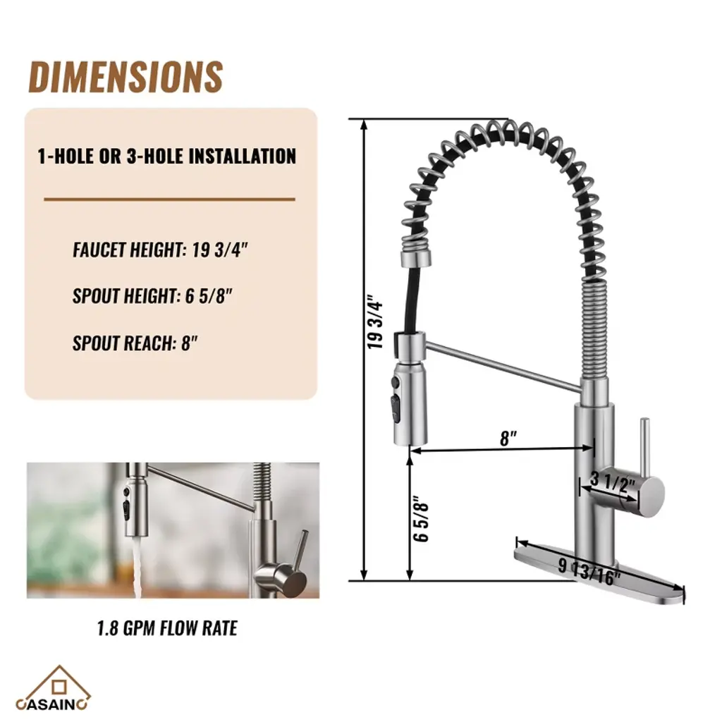 Upgrade your kitchen with the best tools available. Elevate your culinary experience, simplify your chores, and enjoy the reliability, versatility, and durability of our CASAINC spring faucet. Make every moment in the kitchen a masterpiece.
