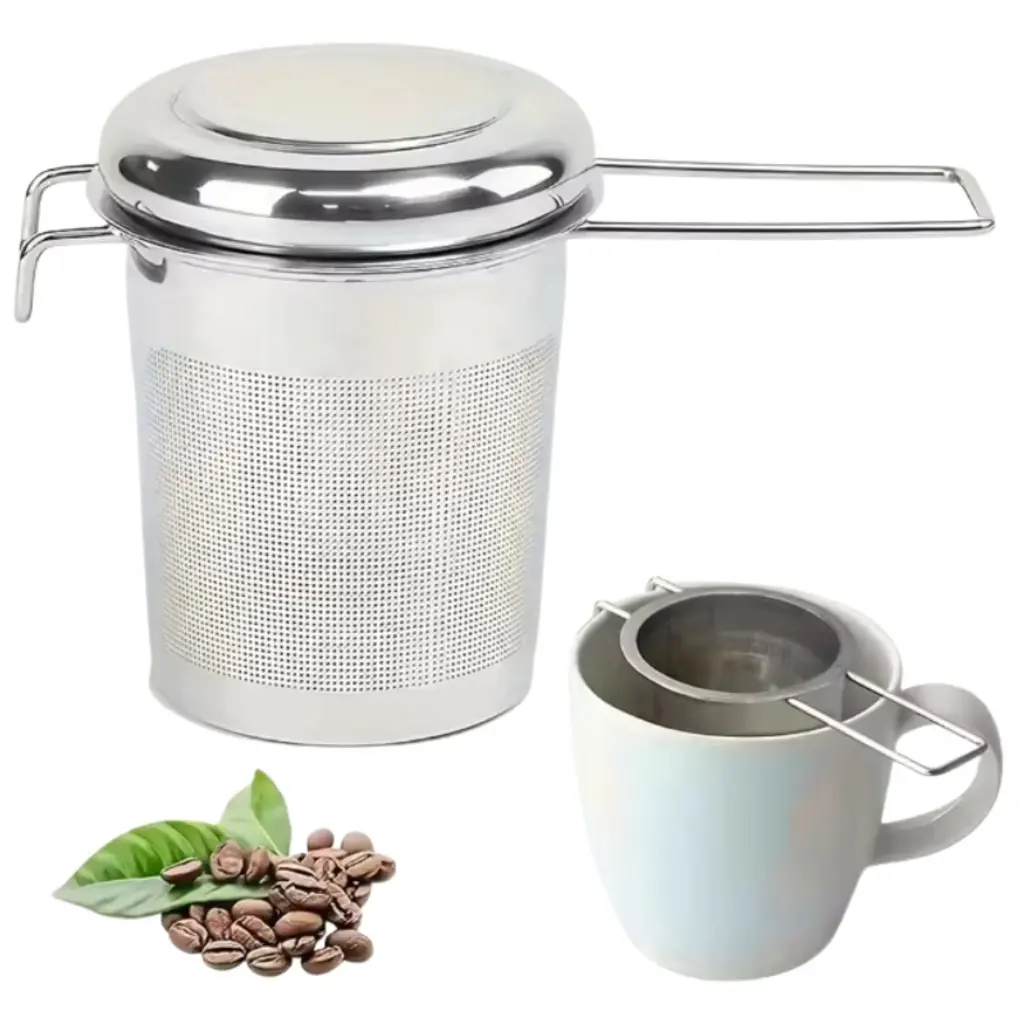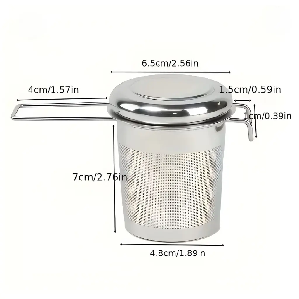This Premium Stainless Steel Tea Filter is a versatile and durable strainer designed for loose-leaf tea lovers. Featuring an extended folding handle for safe handling and an anti-scald lid that doubles as a drip tray, it’s perfect for brewing tea directly in mugs, cups, or teapots. Crafted from high-quality stainless steel, it’s rust-resistant, easy to clean, and built to last.