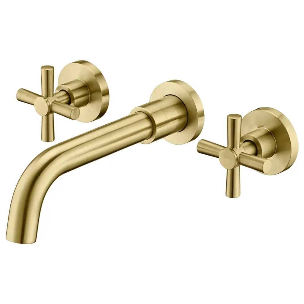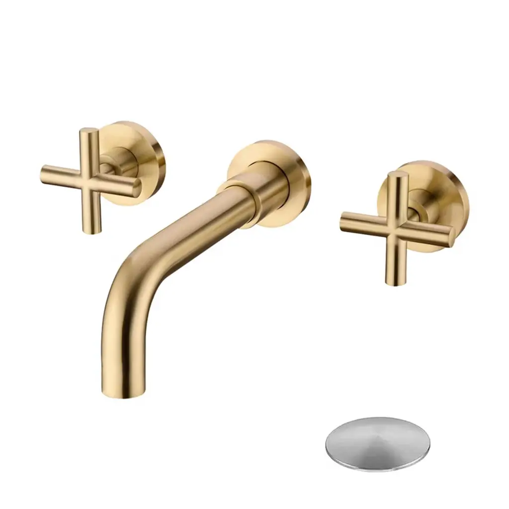 A Kohler faucet from our curated selection instantly transforms your bathroom, whether you're simply swapping out an old faucet or going for a total makeover with one of our bathroom vanities. Striking in brushed brass, the minimalist Purist wall-mounted sink faucet delivers high style and a clean look. The set provides streamlined water control with a 35-degree angled spout angle and easy-to-operate cross handles for independent regulation of hot and cold water.