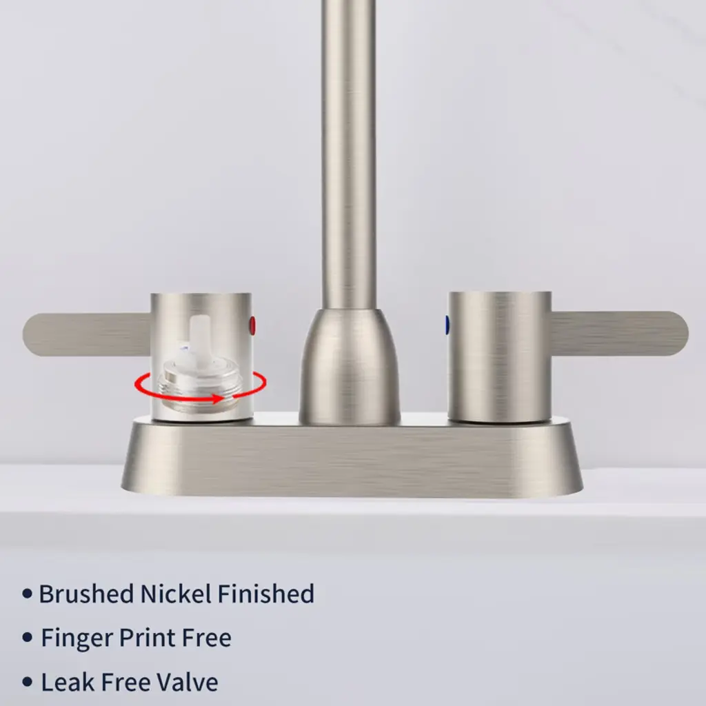 Ktmbdw 4 Inch 2 Handle Centerset Lead-free Modern Bathroom Faucet, 360 Swivel Spout 3 Hole Rv Bathroom Vanity Sink Faucet, Brushed Nickel