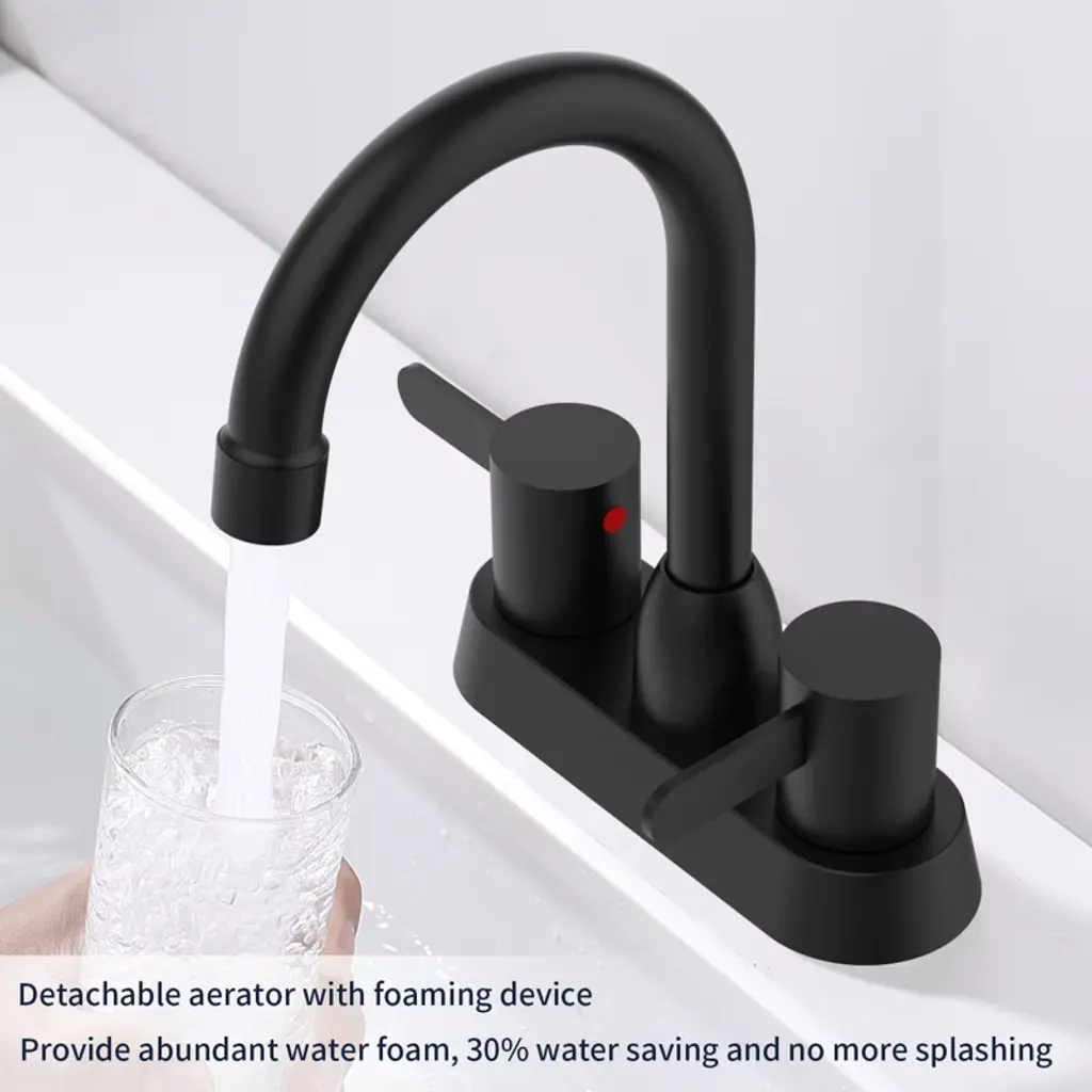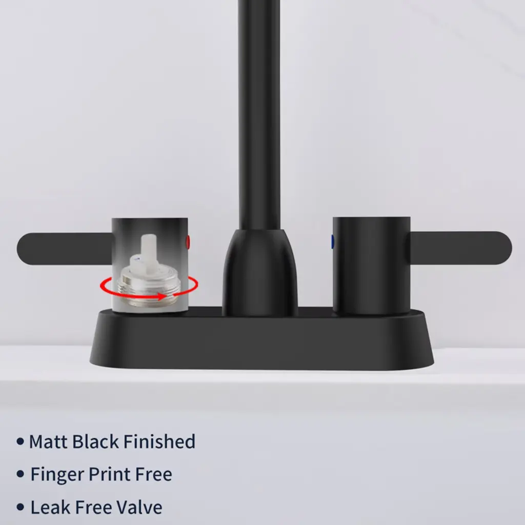Ktmbdw 4 Inch 2 Handle Centerset Lead-free Modern Bathroom Faucet, 360 Swivel Spout 3 Hole Rv Bathroom Vanity Sink Faucet, Matte Black
