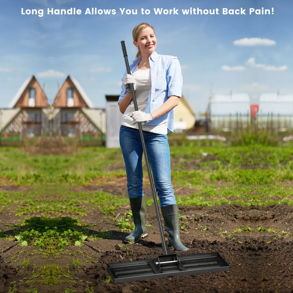 Lawn Leveling Rake With Ergonomic Handle For Yard And Garden - 30" X 10" - Silver