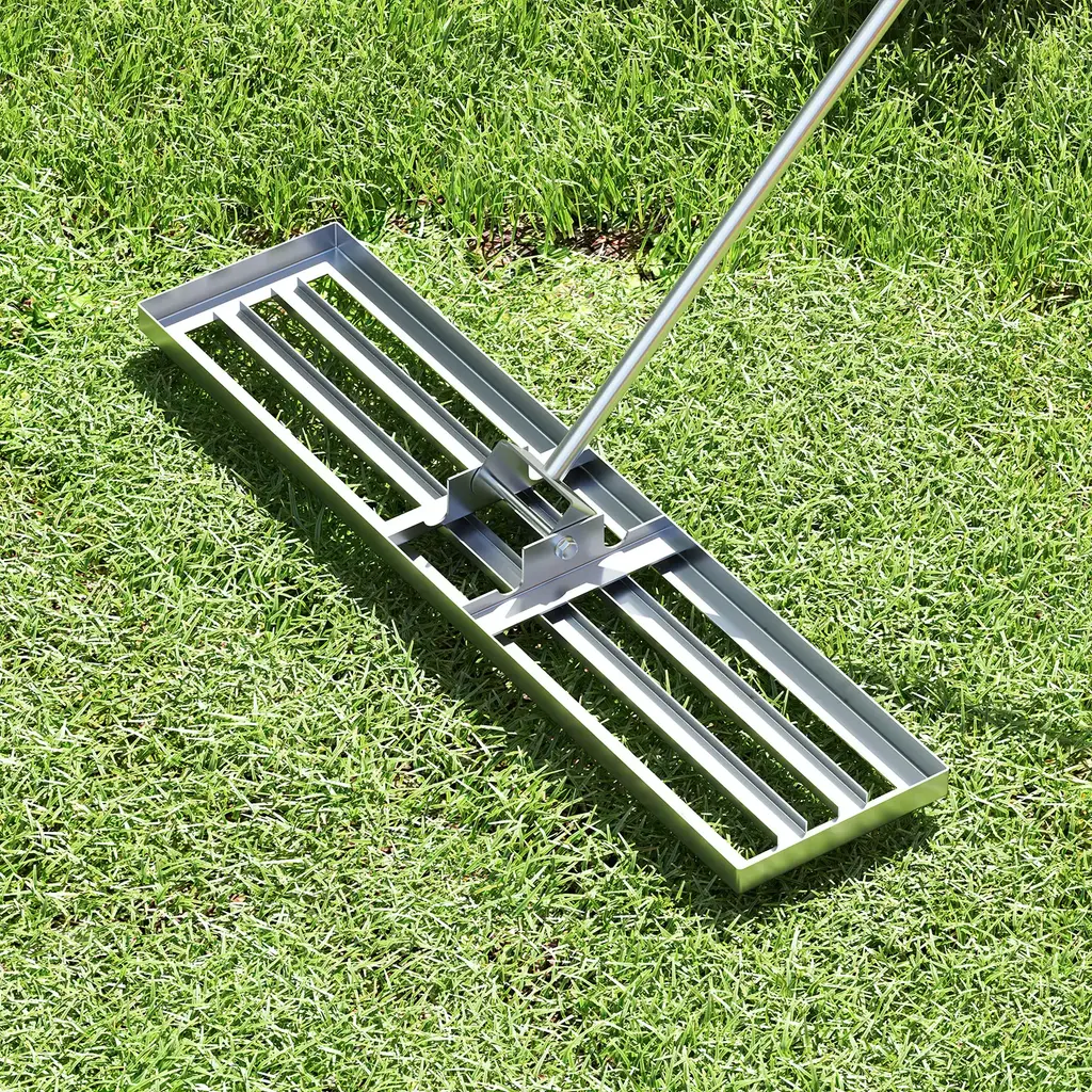 Lawn Leveling Rake With Ergonomic Handle For Yard And Garden - 42" X 10" - Silver