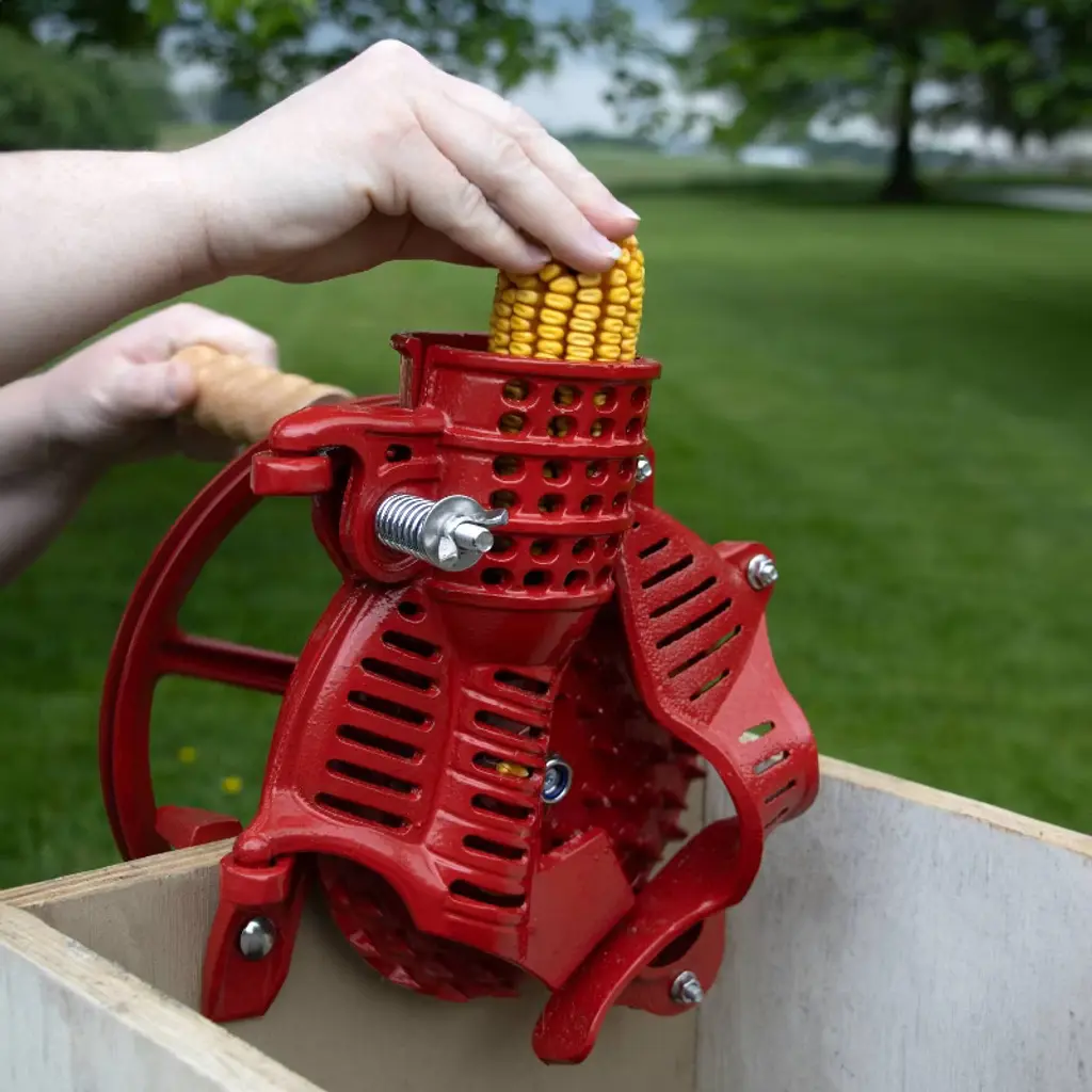 Lehman's Corn Kernel Sheller With Flywheel Pulley, Clamp On Cast Iron Non Electric Walnut Huller, Vintage Style, Red
