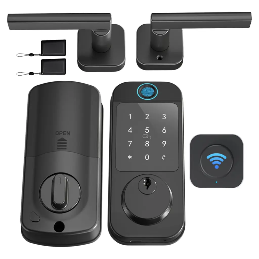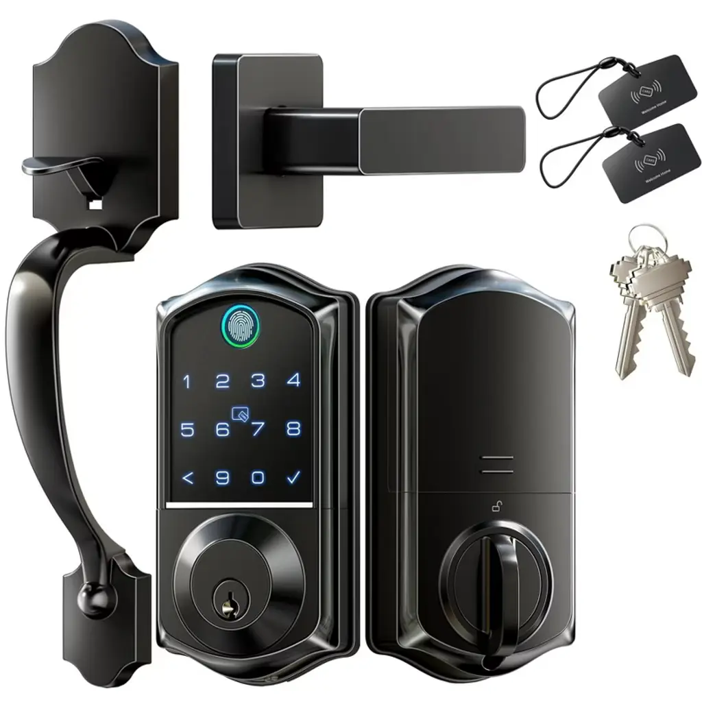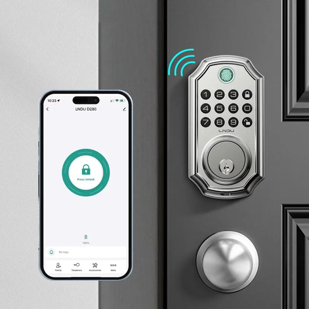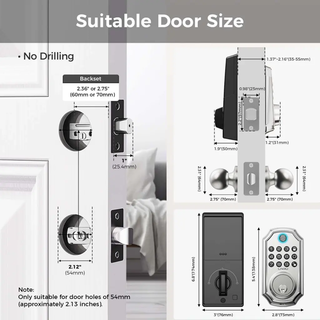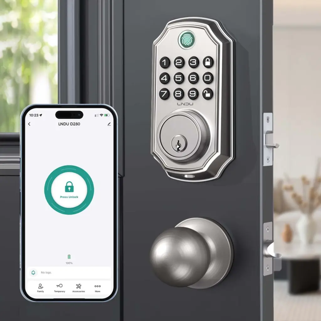 Keyless Entry Door Lock with Handle, App Control Front Door Lock Set Keyless Entry, LNDU 100 Passcode Door Locks for Front Door, Auto Lock One Touch Lock, Anti-Peeking Password, Easy to Install