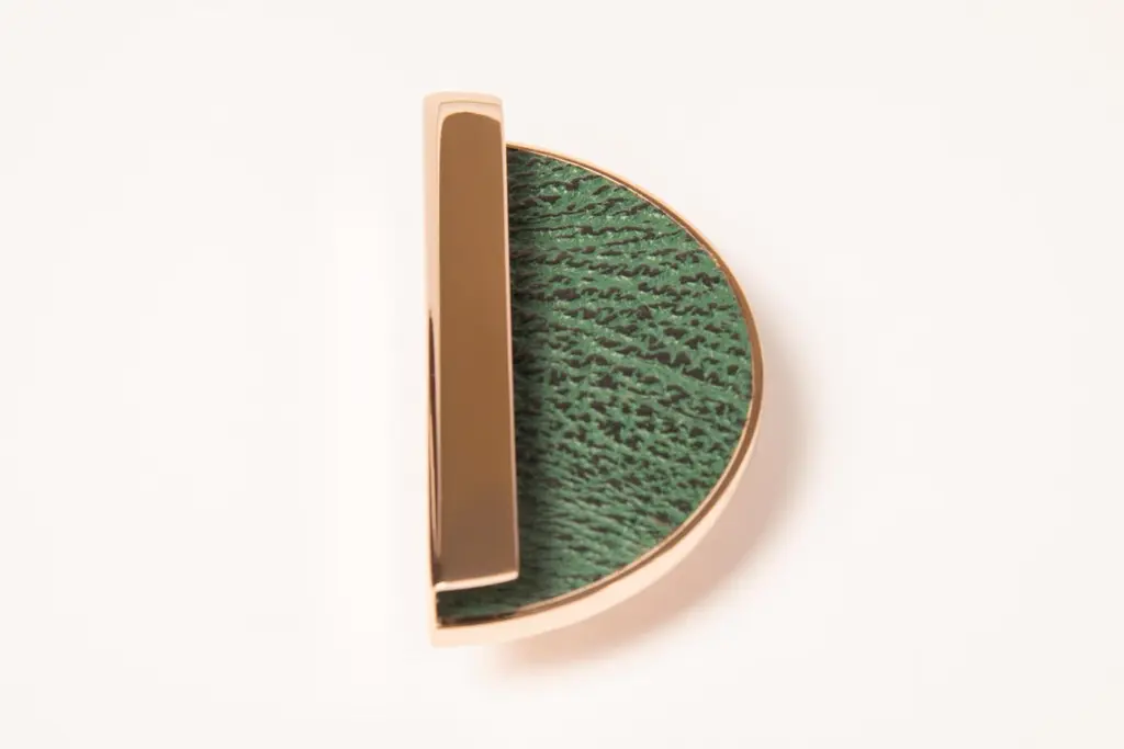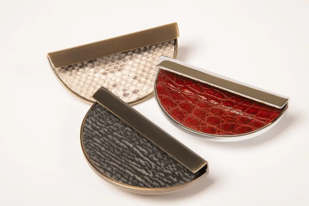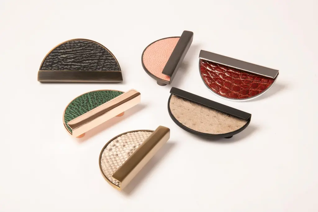 Door & drawer pull handleArtisanal architectural elements that privilege the sense of touch. Made with brass, metal precision pieces cnc turned that are hand finished using unique leathers as saddle, stingray, ostrich, eel, snake, crocodile or shark. Please consult if interested in any other type of leather.Our pieces give an exclusive sense to every project, pieces that may not be seen at first glance that will add value to every high-end home when discovered.Designs that want to reach to a wider type of styles, from contemporary spaces to timeless classic projects. Metal parts made at our facilities in Spain and leather work made by local artisans. Different dimensions and finishes available, please consult. Every piece is custom made so alterations are available.Even all our leathers have strictly permitted sourcing origins, some destinations may have local trade restrictions.