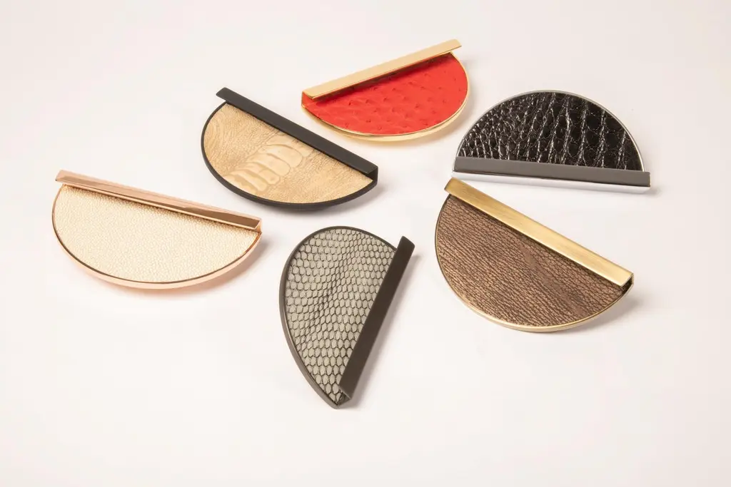 Door & drawer pull handleArtisanal architectural elements that privilege the sense of touch. Made with brass, metal precision pieces cnc turned that are hand finished using unique leathers as saddle, stingray, ostrich, eel, snake, crocodile or shark. Please consult if interested in any other type of leather.Our pieces give an exclusive sense to every project, pieces that may not be seen at first glance that will add value to every high-end home when discovered.Designs that want to reach to a wider type of styles, from contemporary spaces to timeless classic projects. Metal parts made at our facilities in Spain and leather work made by local artisans. Different dimensions and finishes available, please consult. Every piece is custom made so alterations are available.Even all our leathers have strictly permitted sourcing origins, some destinations may have local trade restrictions so, in case of doubt.