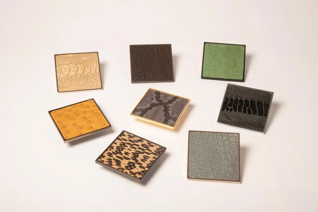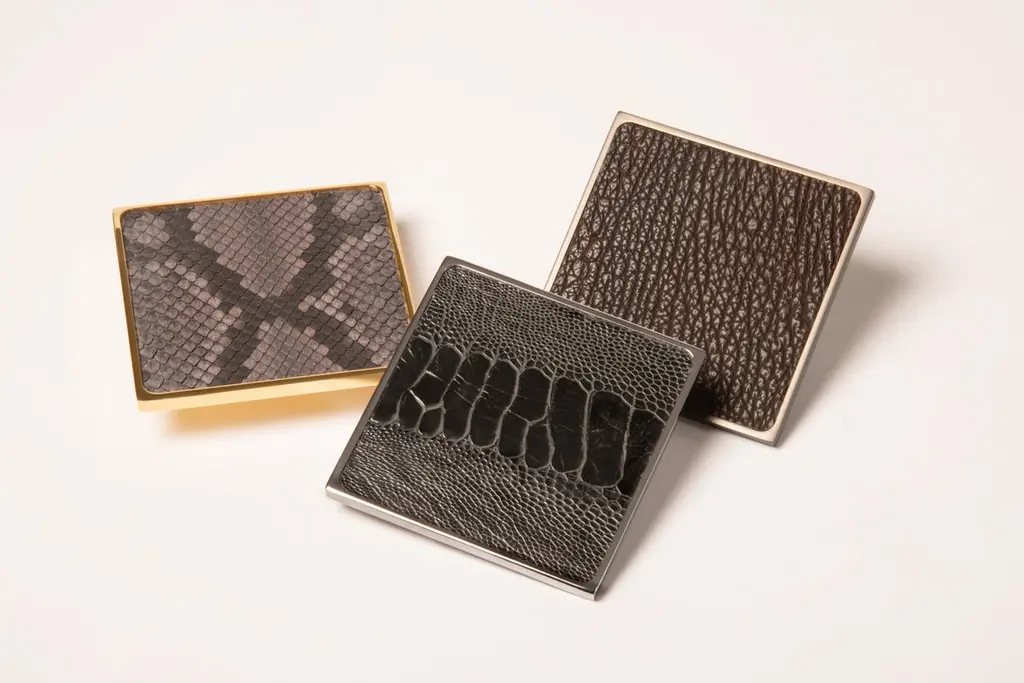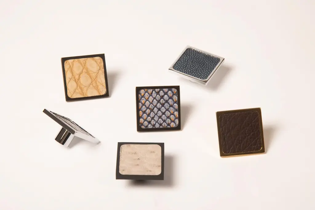 Door & drawer pull handleArtisanal architectural elements that privilege the sense of touch. Made with brass, metal precision pieces cnc turned that are hand finished using unique leathers as saddle, stingray, ostrich, eel, snake, crocodile or shark. Please consult if interested in any other type of leather.Our pieces give an exclusive sense to every project, pieces that may not be seen at first glance that will add value to every high-end home when discovered.Designs that want to reach to a wider type of styles, from contemporary spaces to timeless classic projects. Metal parts made at our facilities in Spain and leather work made by local artisans. Different dimensions and finishes available, please consult. Every piece is custom made so alterations are available.Even all our leathers have strictly permitted sourcing origins, some destinations may have local trade restrictions so, in case of doubt, please feel free to consult us directly before ordering.