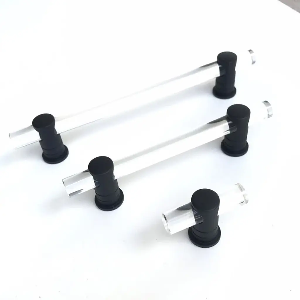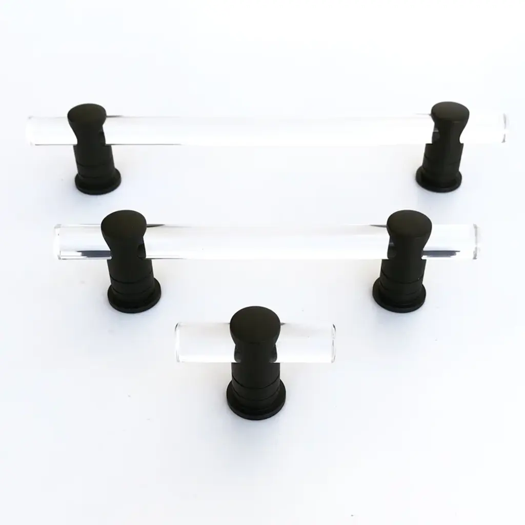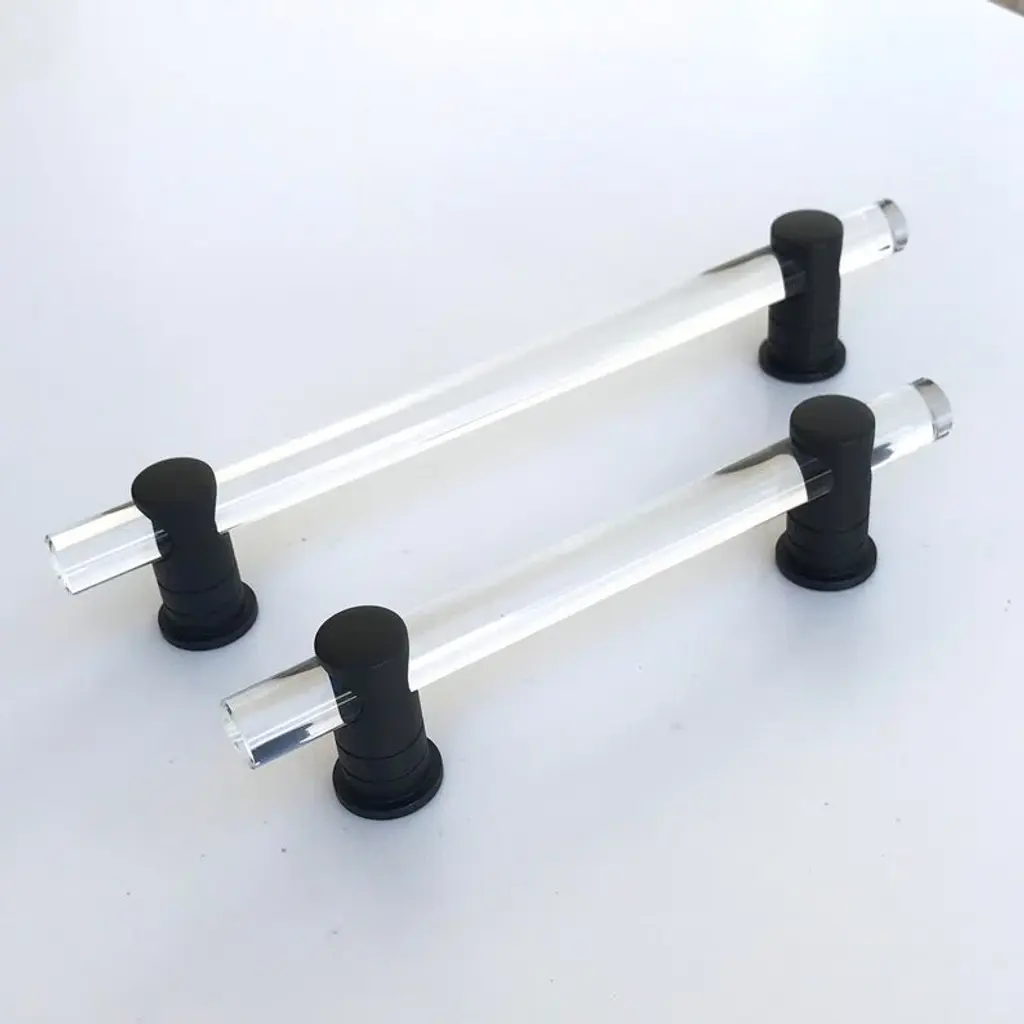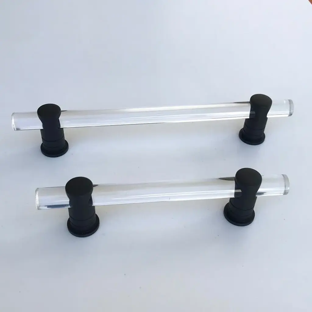 This lucite and satin brass pull works on many pieces including kitchen cabinets, a nursery, or unique furniture pieces. The items are made with high-quality solid brass posts and a high-end lucite rod.