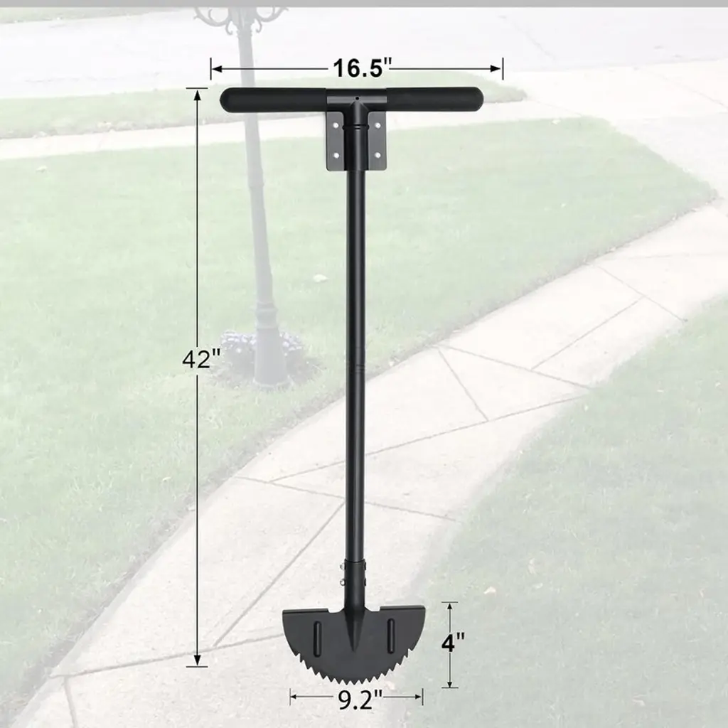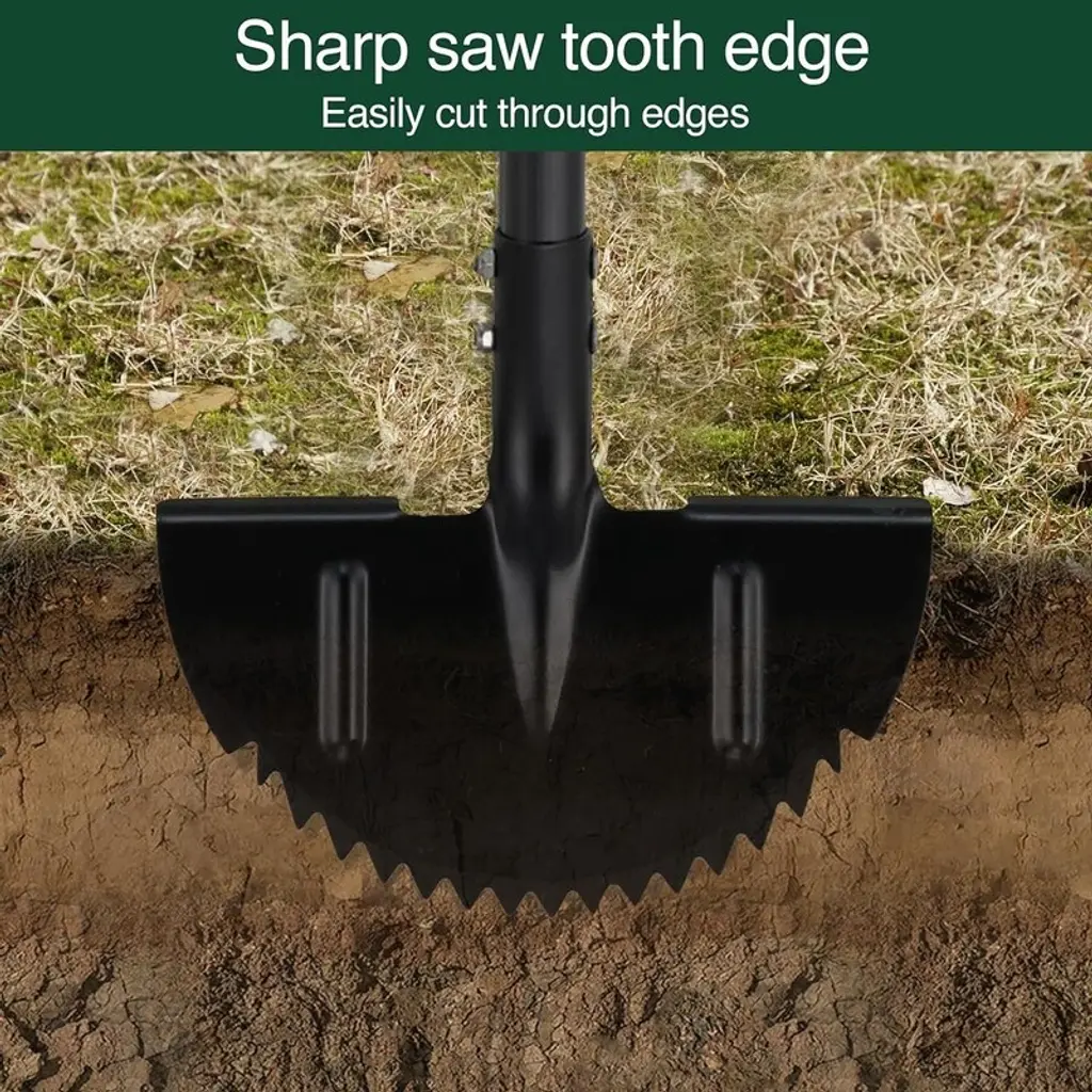 Edging tool for landscaping: Just line yard edger up along the edge and push or step down into the ground. Creates a perfect straight or curved edged line with 4" in depth along any sidewalk, border or stepping stone. This garden edger is composed of softer padded T-grip, sharp saw tooth edges and wide foot pedal for easily cutting through edges. 40 inch manual lawn edger tool made of sturdy rustproof steel did stand up to the pounding and never bent. Designed for environmental protection, hand edger shovel prevents fuel, noise and strong smell. Easy to Install by screwing poles together and tighten T-Grip with all screws and wrench provided.