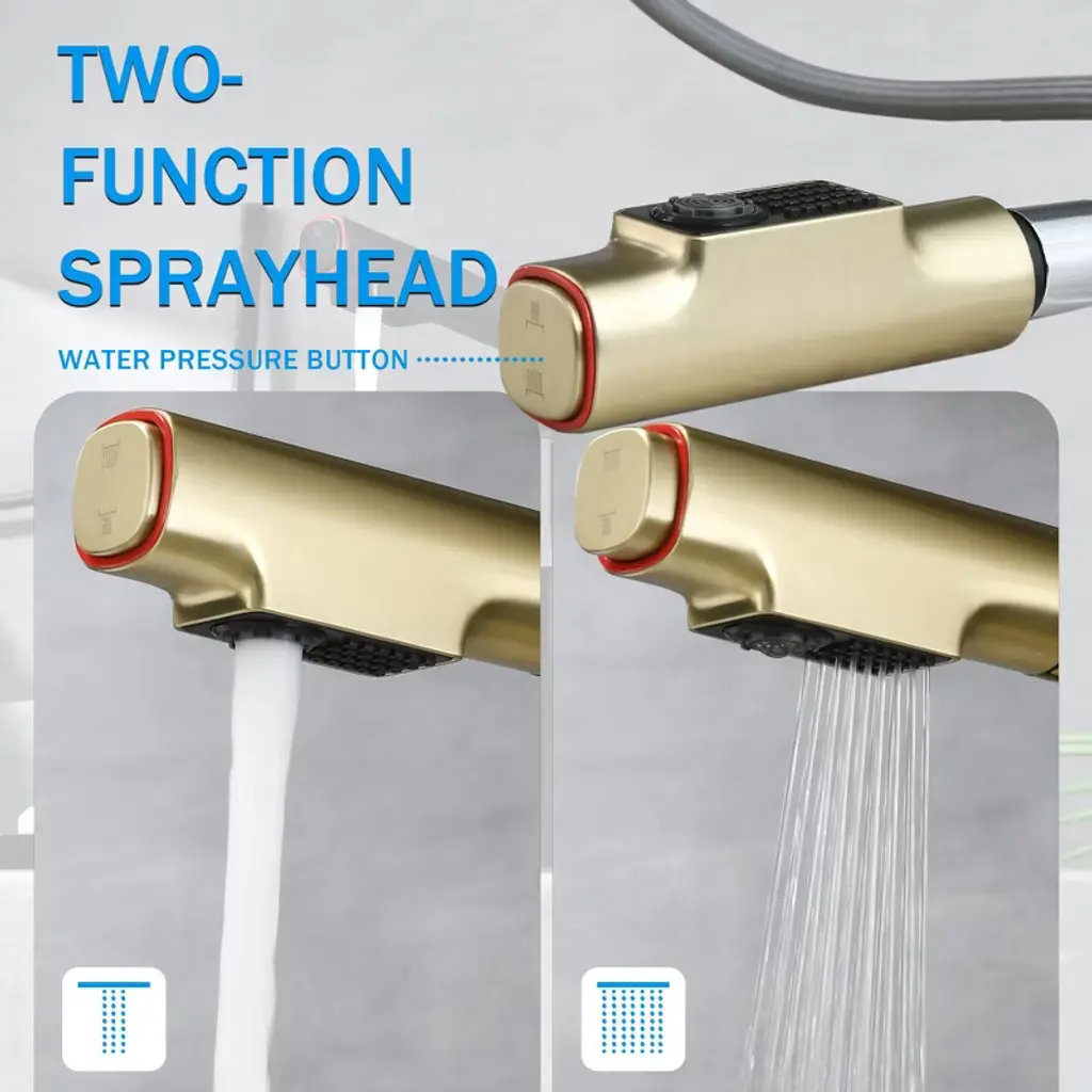 【Full-Scene Coverage】: 23.6 in retractable hose with 3.55 in lift range adapts to vessel sinks/deep kitchen basins, featuring tool-free installation and smooth movement. 【Dead-Angle-Free Cleaning】: 360° swivel spout reaches every corner of sinks, with one-touch rinse mode for oral cleaning. 【Dual Spray with Splash Control】: Aerated stream (gentle for washing) + Spray mode (high-pressure cleaning), reducing splash by 62% while saving water. 【Ceramic-Core Durability】: 500,000-cycle tested ceramic cartridge ensures precise hot/cold switching, corrosion-resistant for all wet environments.