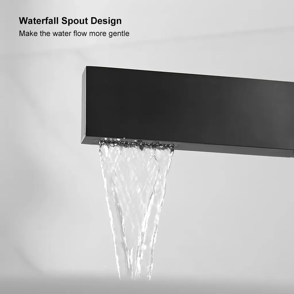 Matte Black Ultra-Thin Single Handle Waterfall Bathroom Sink Faucet Solid Brass 1-Hole