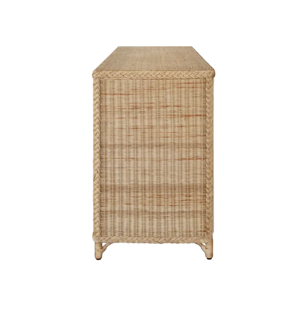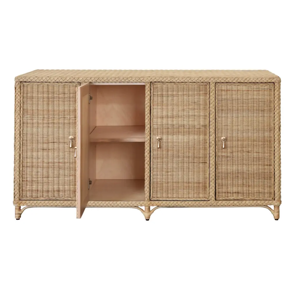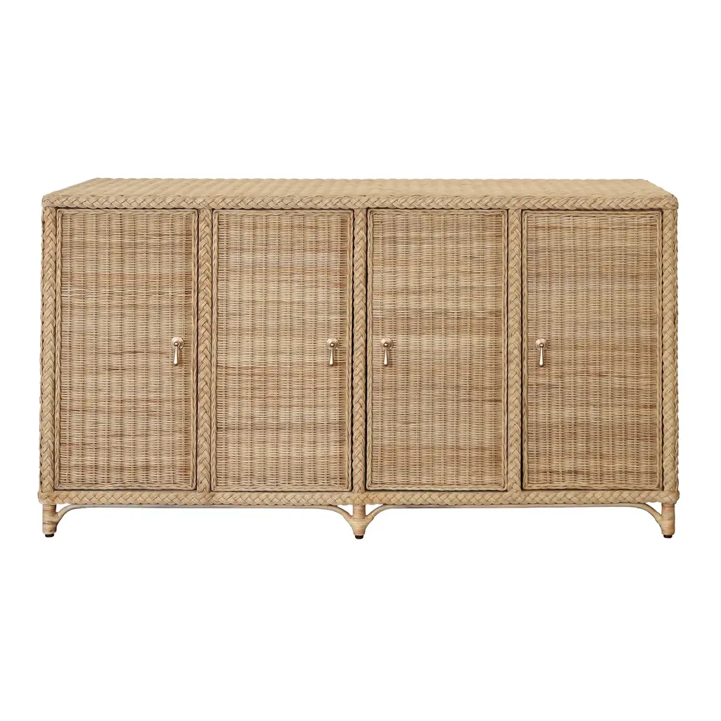 Matthew Izzo Home - Evander Four Door Rattan Buffet With Satin Brass Drawer Pulls
