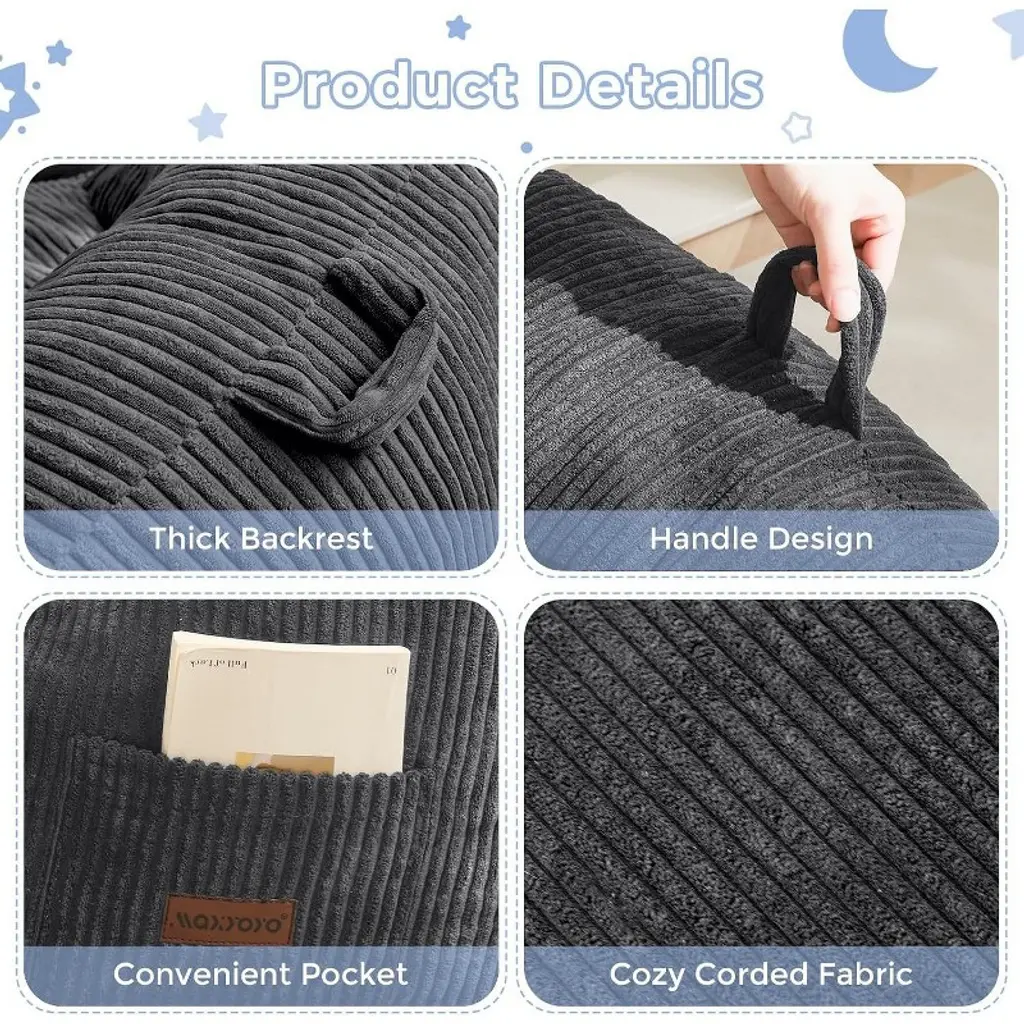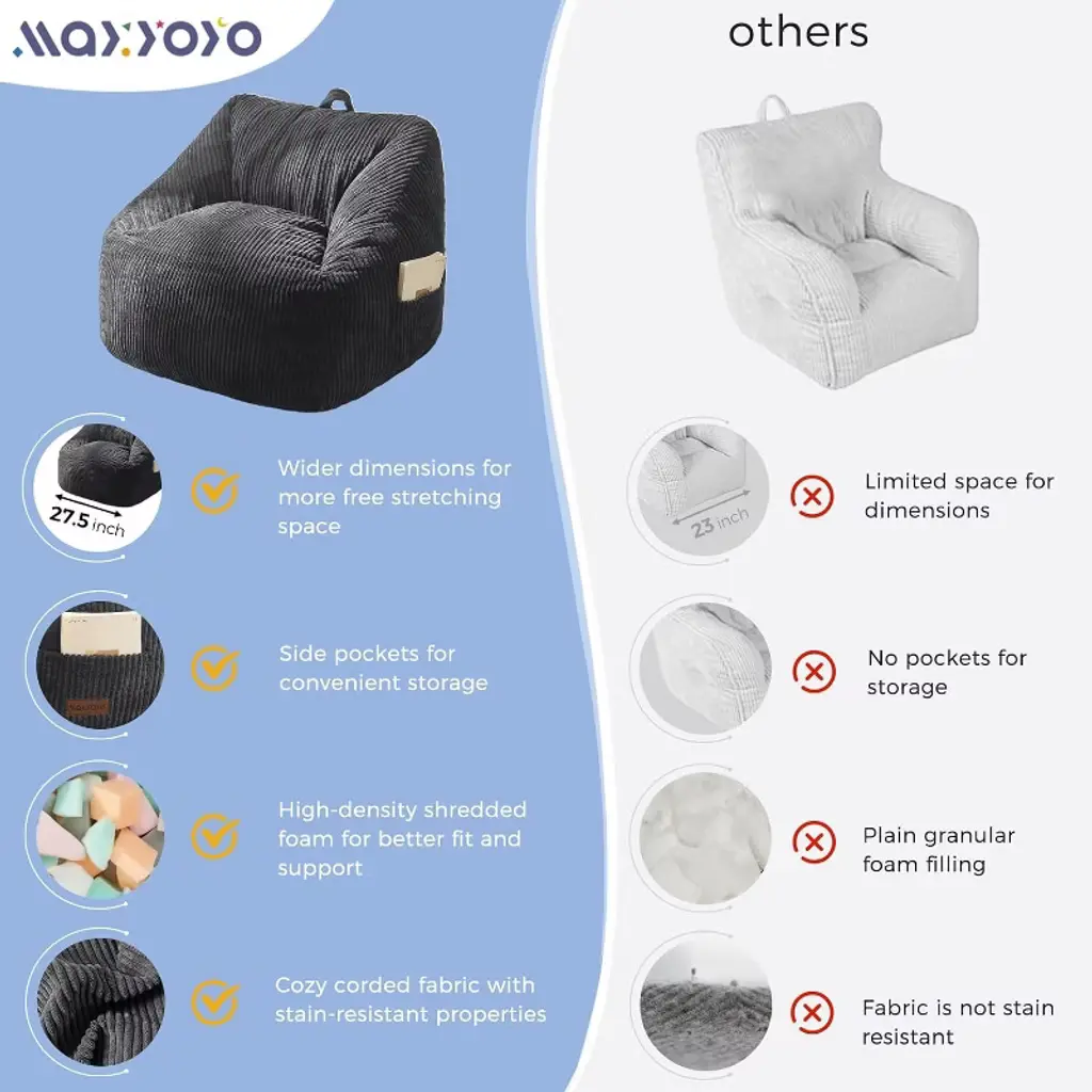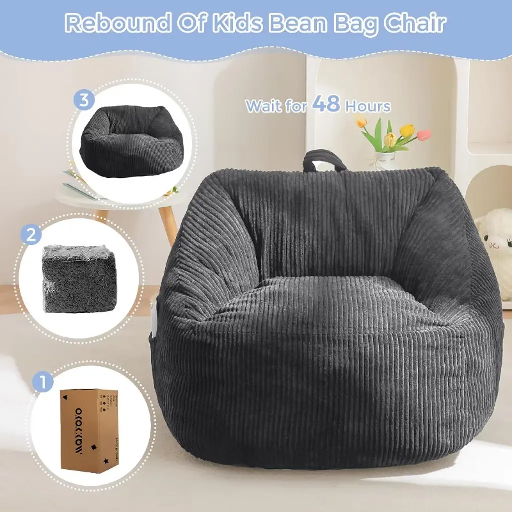 Maxyoyo Kids Bean Bag Chair, Bean Bag Couch With Handle, Comfy Toddler Chair For Boys And Girls, Grey