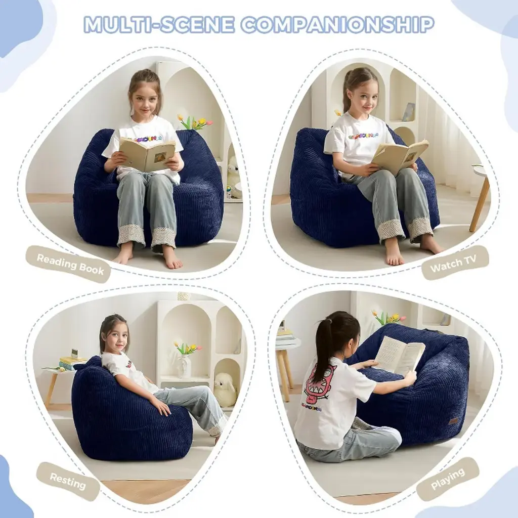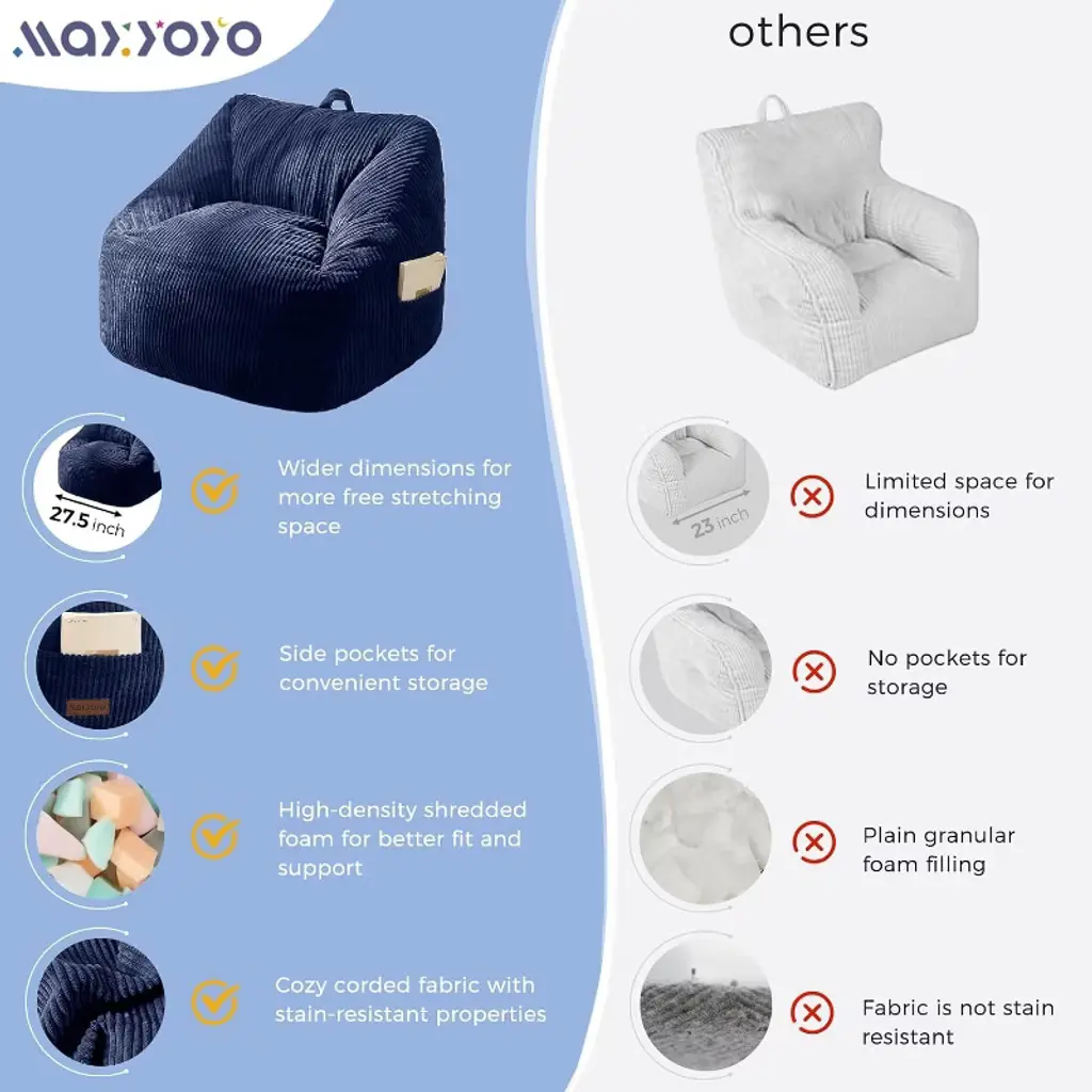 Maxyoyo Kids Bean Bag Chair, Bean Bag Couch With Handle, Comfy Toddler Chair For Boys And Girls, Navy