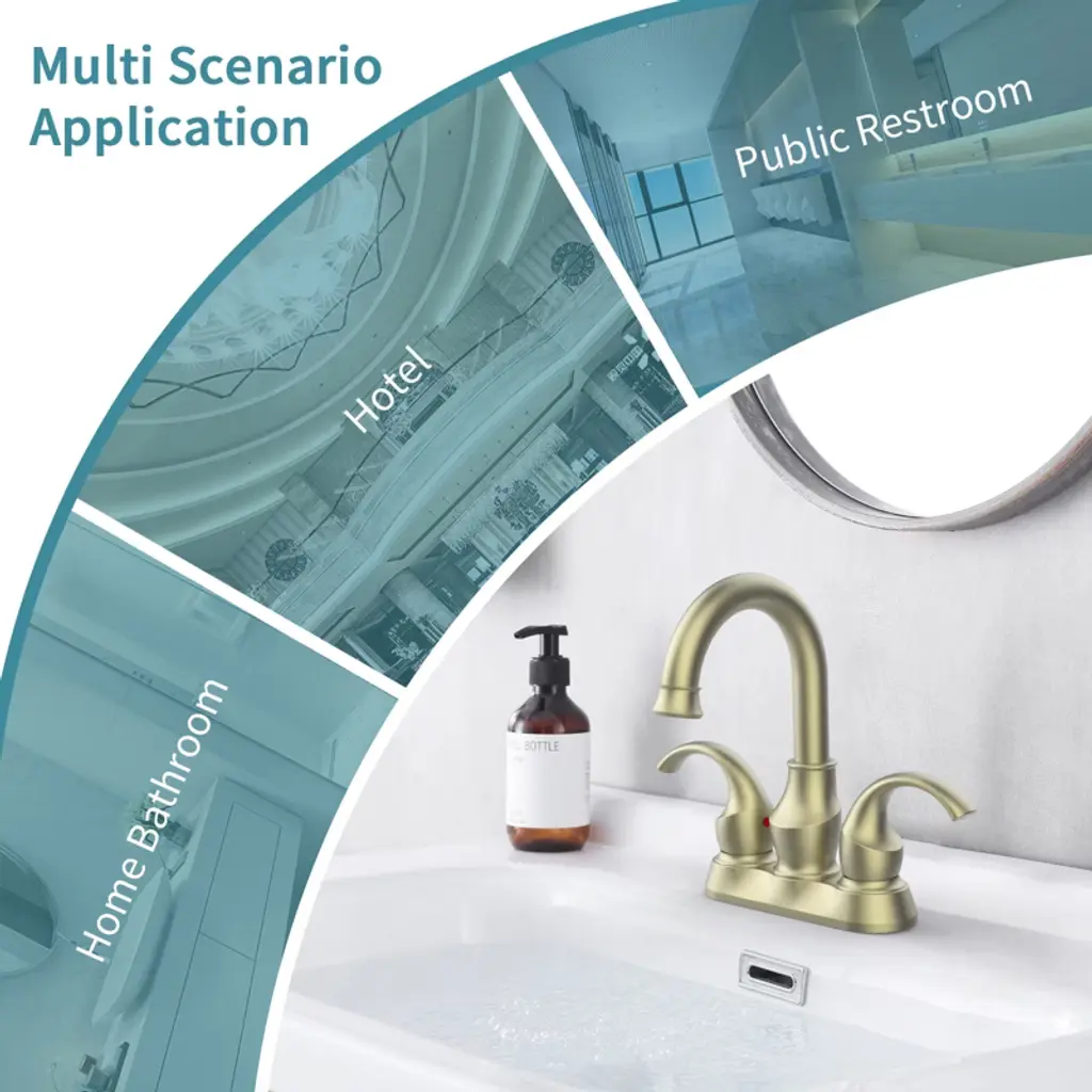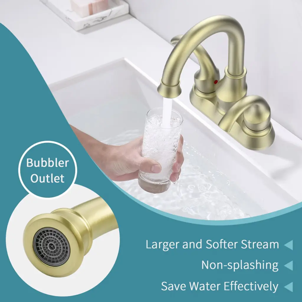 Mayeerty Bathroom Faucet 2 Handle Brushed Gold With 360 Degree Rotating Spout Pop Up Drain Supply Hoses