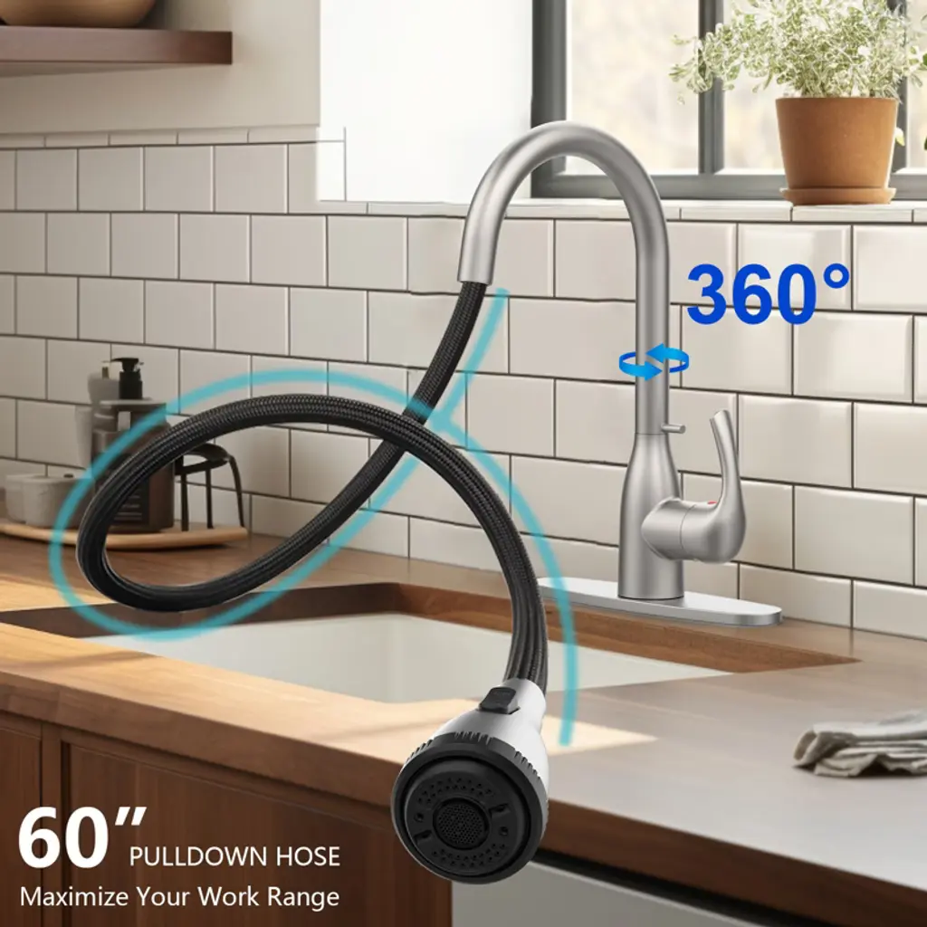 Mayeerty Kitchen Faucet With Pull Down Sprayer And 4 Sprayer Modes Single Handle Commercial Spring Kitchen Sink Brushed Nickel 1 Or 3 Hole