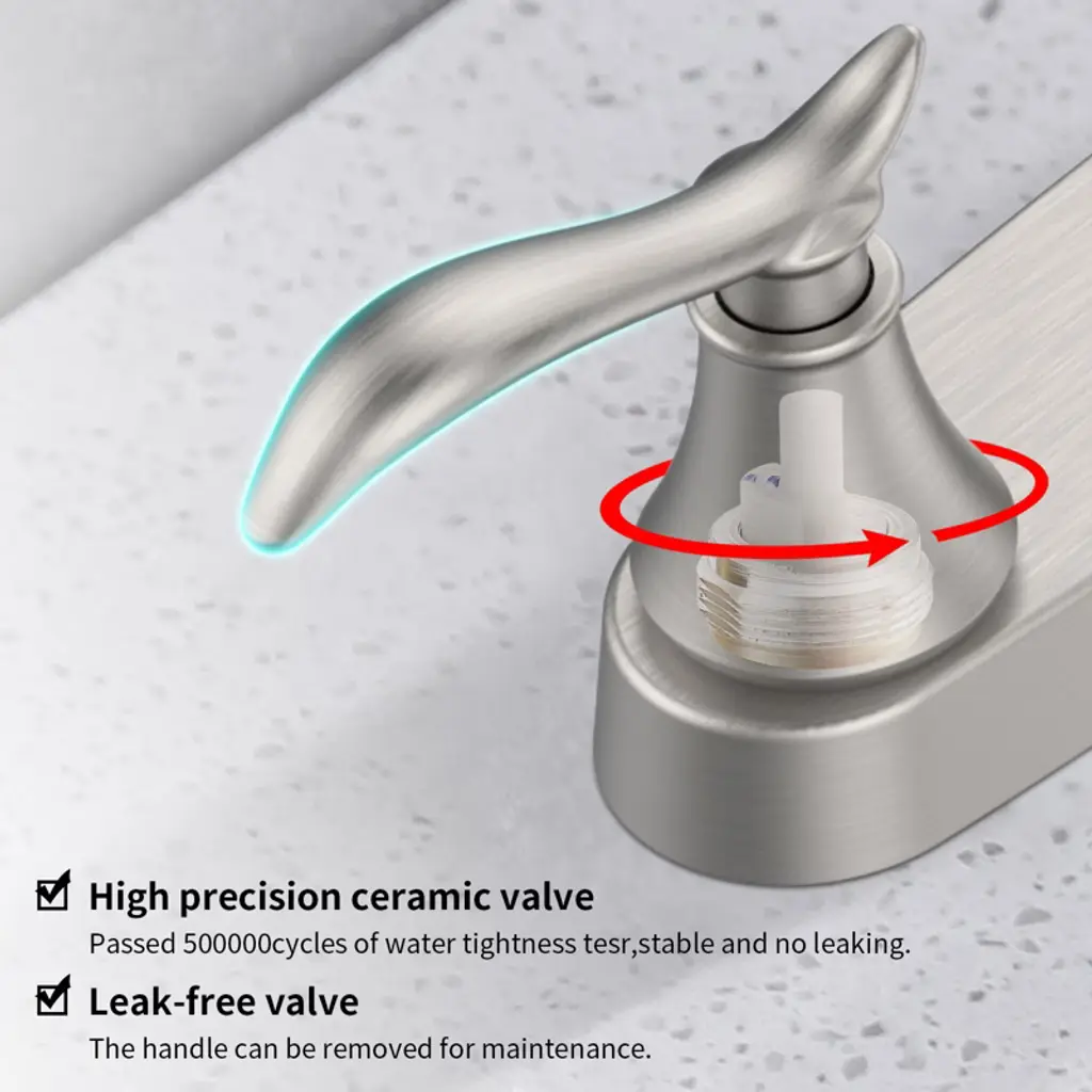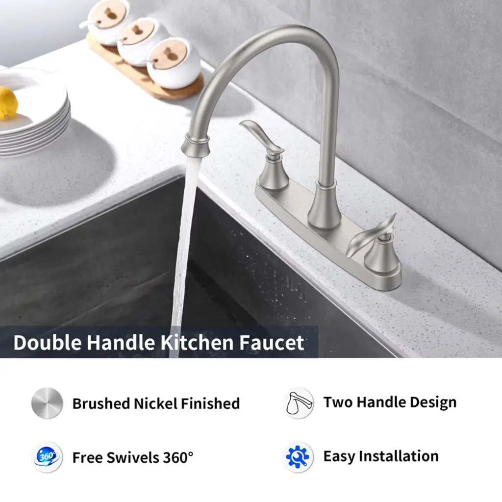 The metal kitchen faucet exudes an elegant and modern vibe, serving as a highly stylish fixture in the kitchen. It makes cleaning easy and convenient. Featuring a single-handle design, it allows you to effortlessly control the gentle water flow. The unique spout design provides ample space for cookware of all sizes. With its exceptional texture, the faucet adds an exquisite touch to the kitchen.