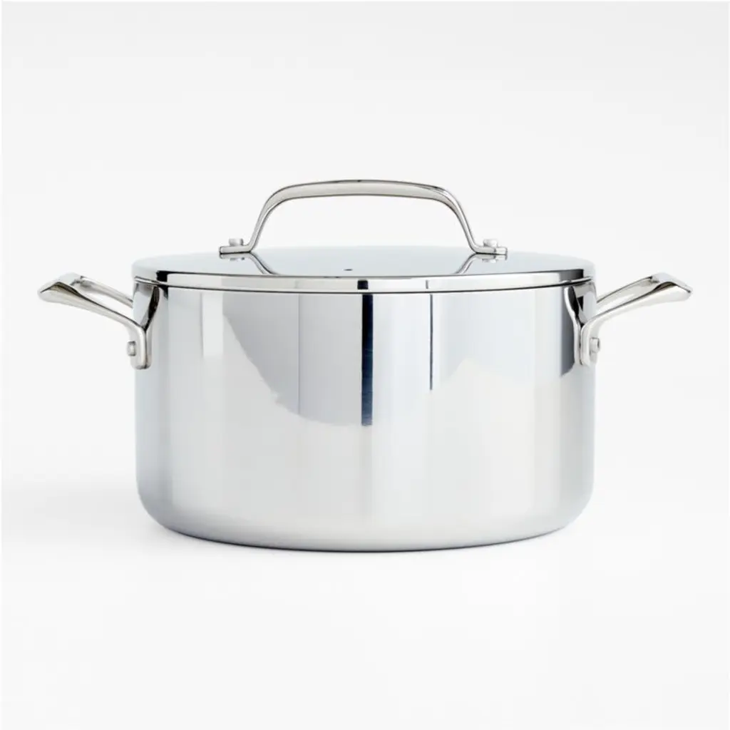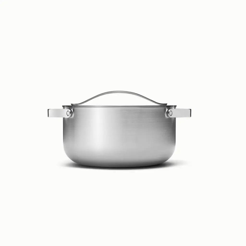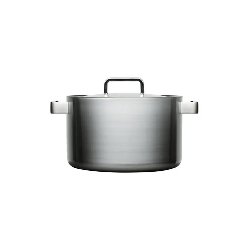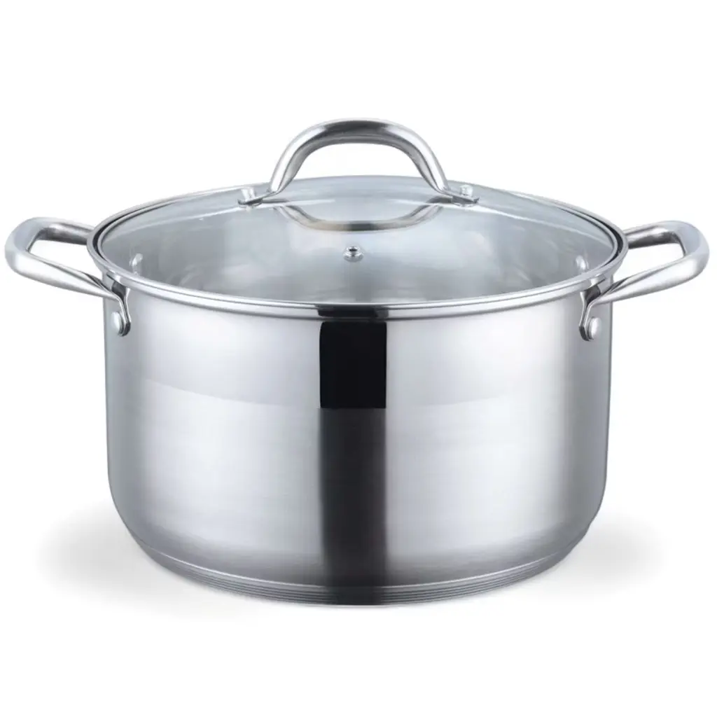 Rustic, Industrial design for this collection of high-performance pots and pans. The special Vintage Process gives to the surface of Stainless Steel a rustic, warm and elegant appearence; yet the product is inoxidable, dishwasher safe, durable and food safe. The production process is not galvanic and do not produce pollution.The high conductivity of pure aluminum merges with the practicality and hygiene of steel. Technology: Tri-ply, 18/10 Stainless Steel, aluminum core, Induction Steel outside, Mirror polished surfaces, outside and inside, Handles with strongly fixed 18/10 Stainless Steel rivets, Graduated measurement inside. Dishwasher proof. Results: The heat is distributed evenly over the surface of the pot; Greater control of cooking temperature; Considerable saving of energy and time; Minor alteration of vitamins and proteins during cooking.