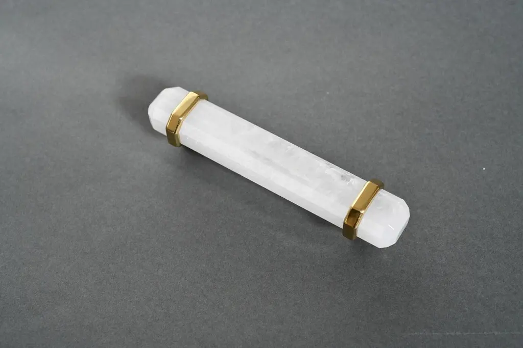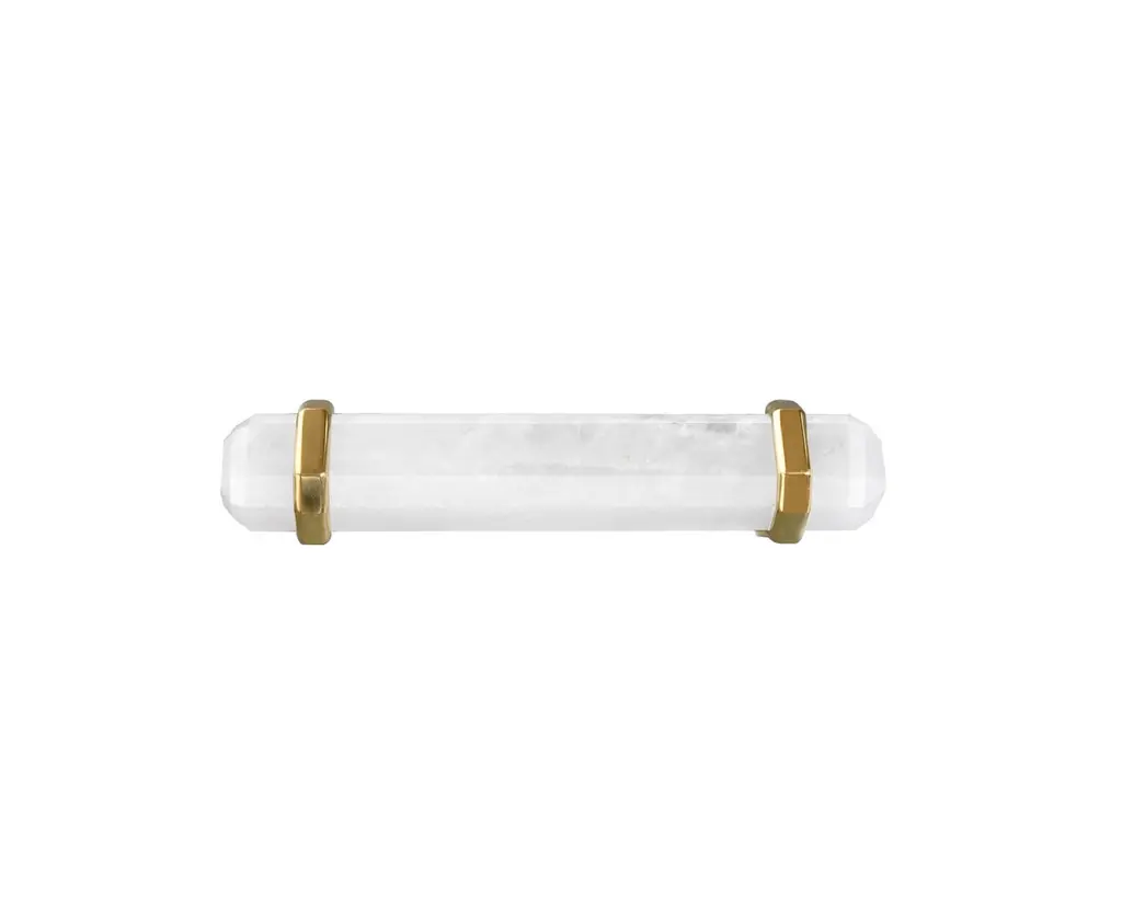 Rock crystal handles with polished brass decoration. Created by Phoenix Gallery NYC.