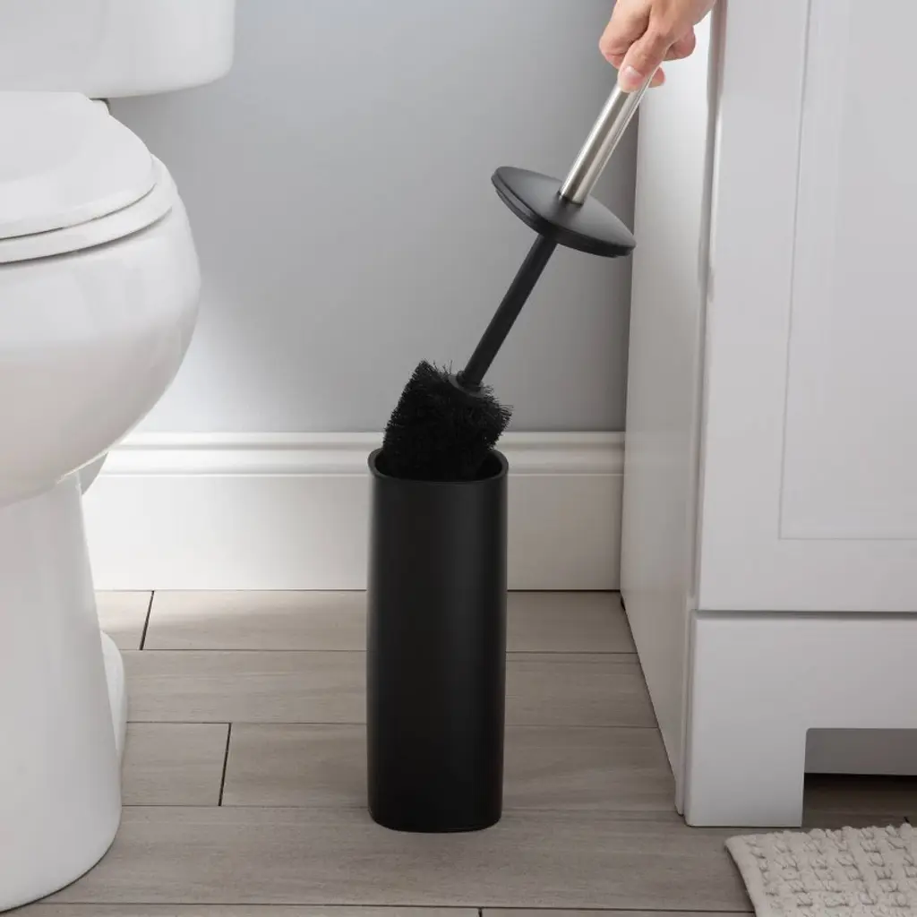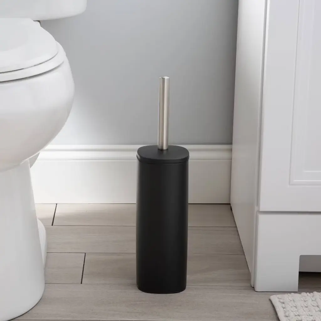 Moda At Home Bryant Powder Coated Toilet Bowl Brush Holder With Handle Black