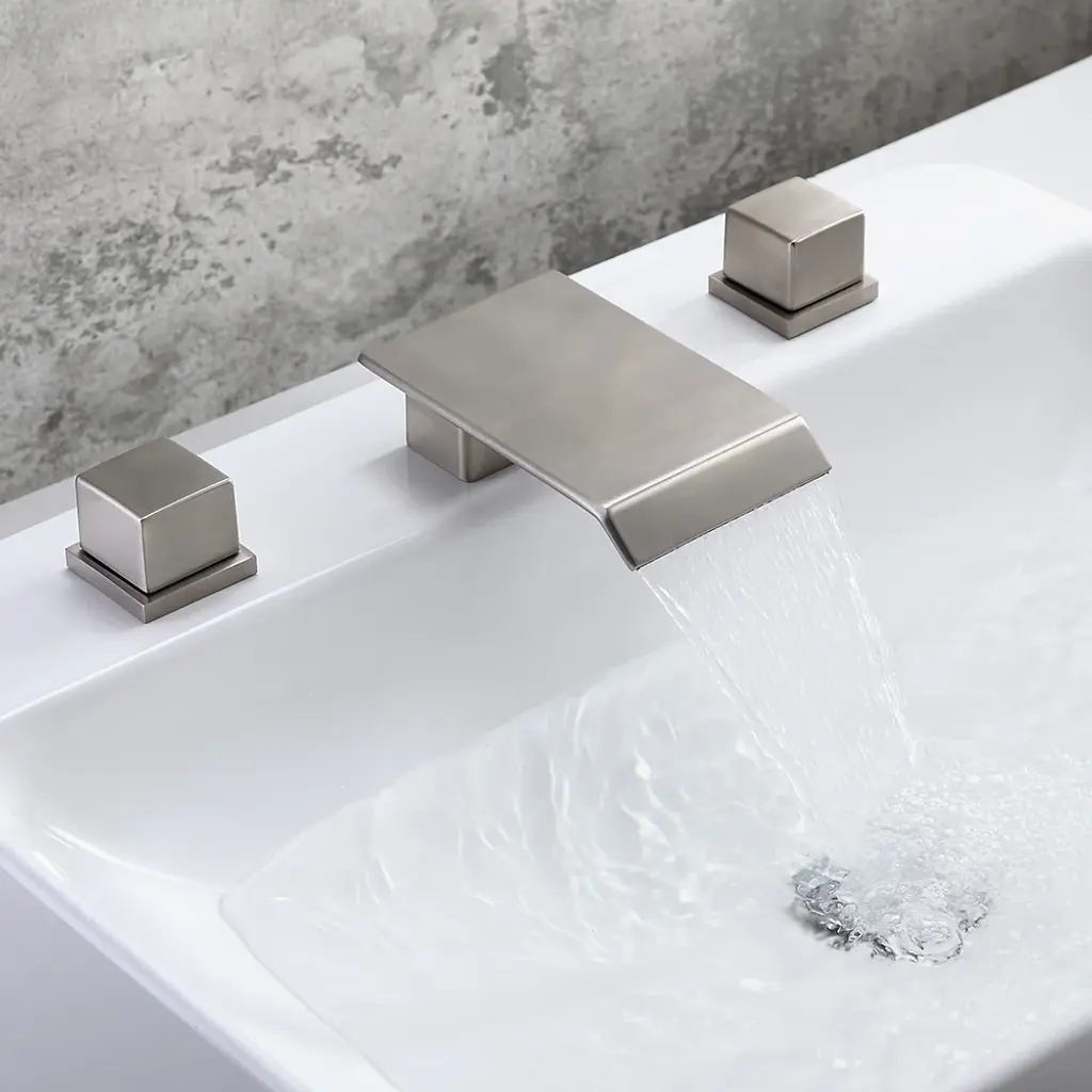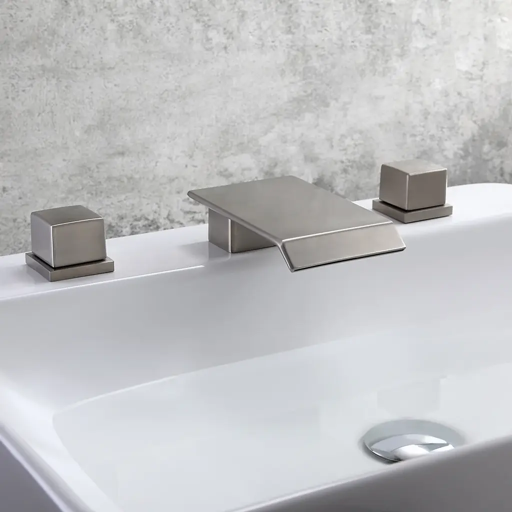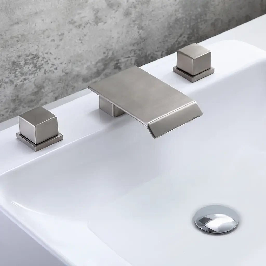 Moda Brushed Nickel Waterfall Widespread Bathroom Sink Faucet Square Double Handle