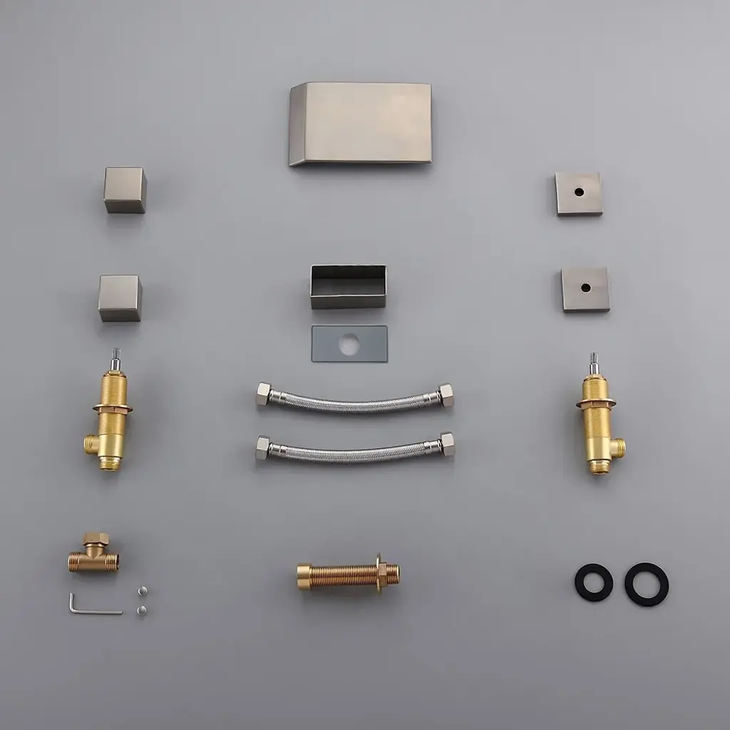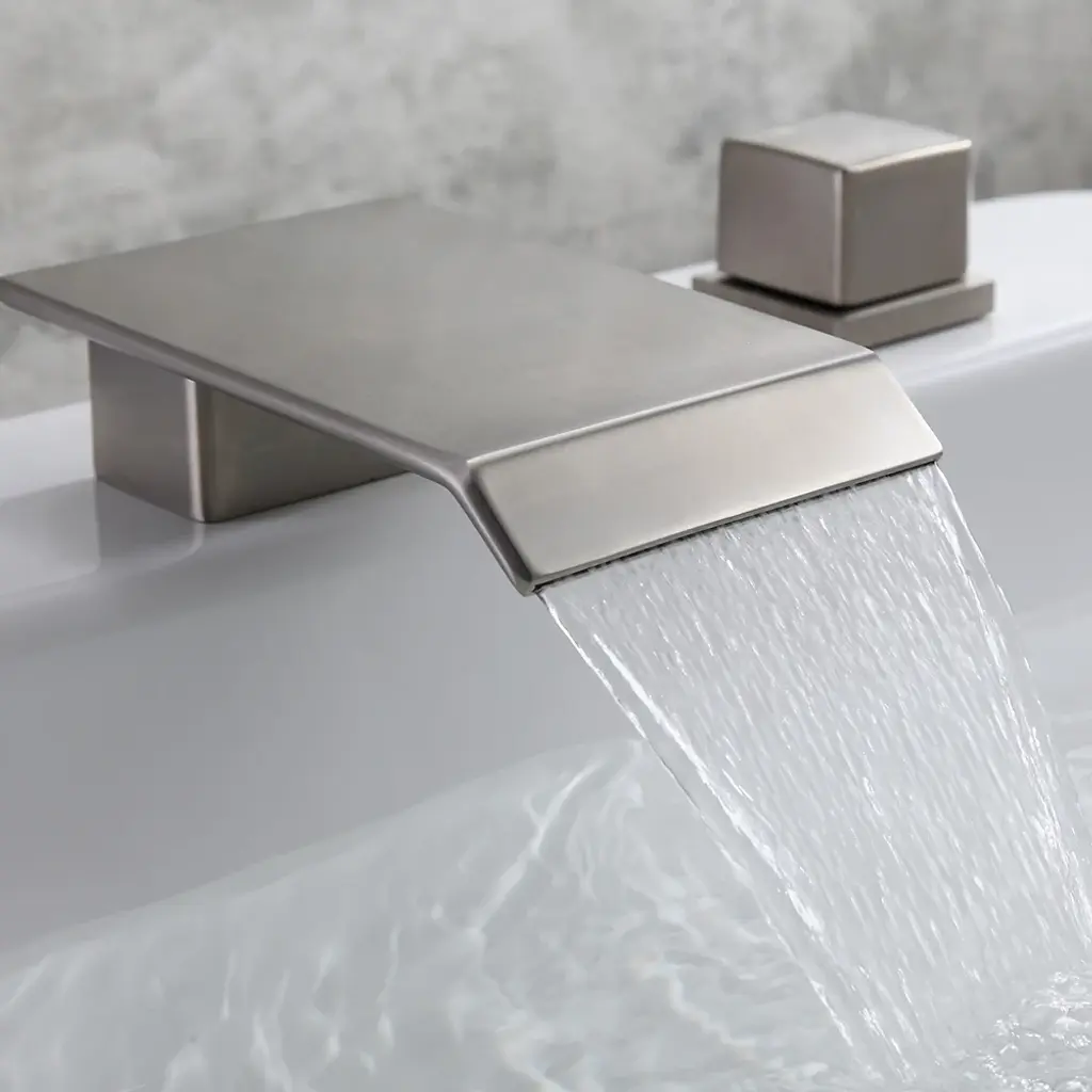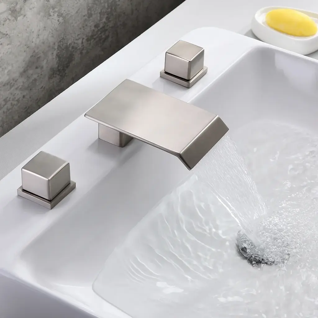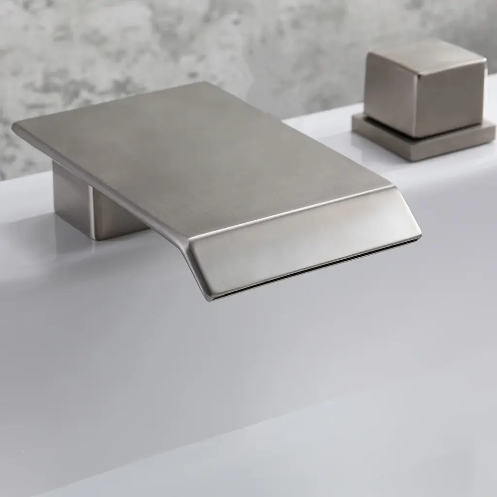 Moda Brushed Nickel Waterfall Widespread Bathroom Sink Faucet Square Double Handle