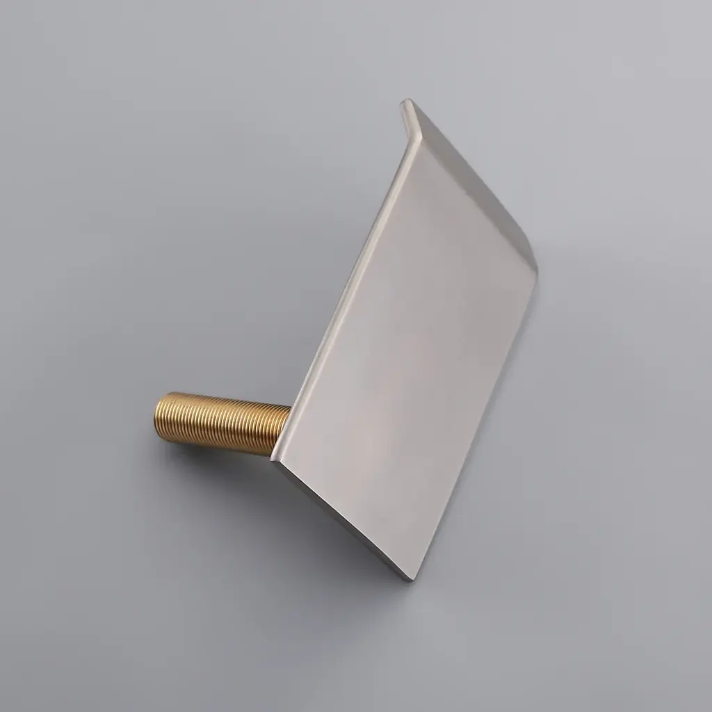 Architecturally inspired, Moda Collection of bathroom faucet takes the contemporary theme, featuring sleek, simplistic lines and a gorgeous water-efficient waterfall with an extremely flat spout. Outfit your bathroom in style with this sink faucet from Moda Collection. Comes with a wide spout, it cascades a sheet of water down to the sink, adding a lively element to your tranquil space. Two square handles offer easy control of water flow and temperature. What's more, the brass construction and high-quality brushed nickel finish make it a reliable and stylish addition to any vessel.