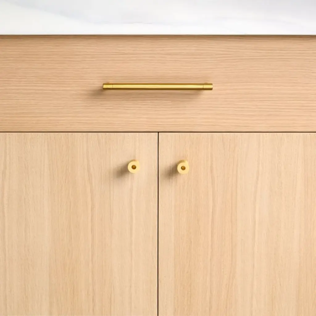 Sometimes it's the small things that pull a room together. That's why we've designed a hardware collection with modern silhouettes and a touch of tradition to give your kitchen and bathroom that perfect finishing touch. Grooved detailing lends an industrial vibe to these understated bar pulls, available in four sizes. Crafted of gleaming brass, the pulls have clean curves enhanced by the brushed finish. Hardware is included to make it easy to refresh the look of dresser drawers, cabinet doors and vanities.