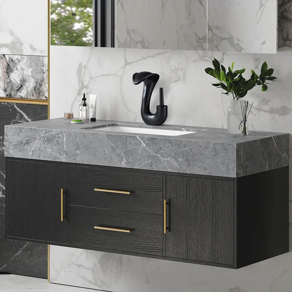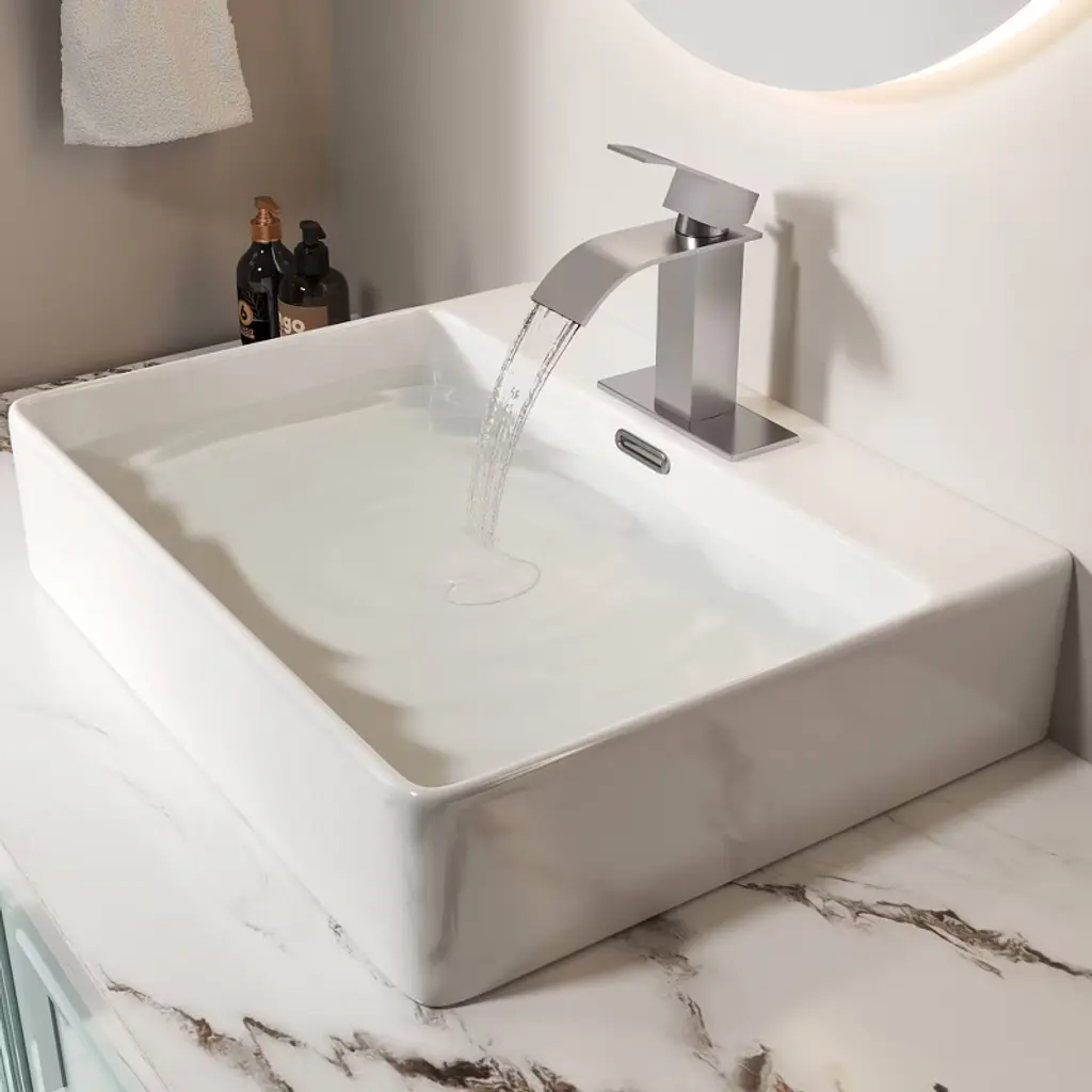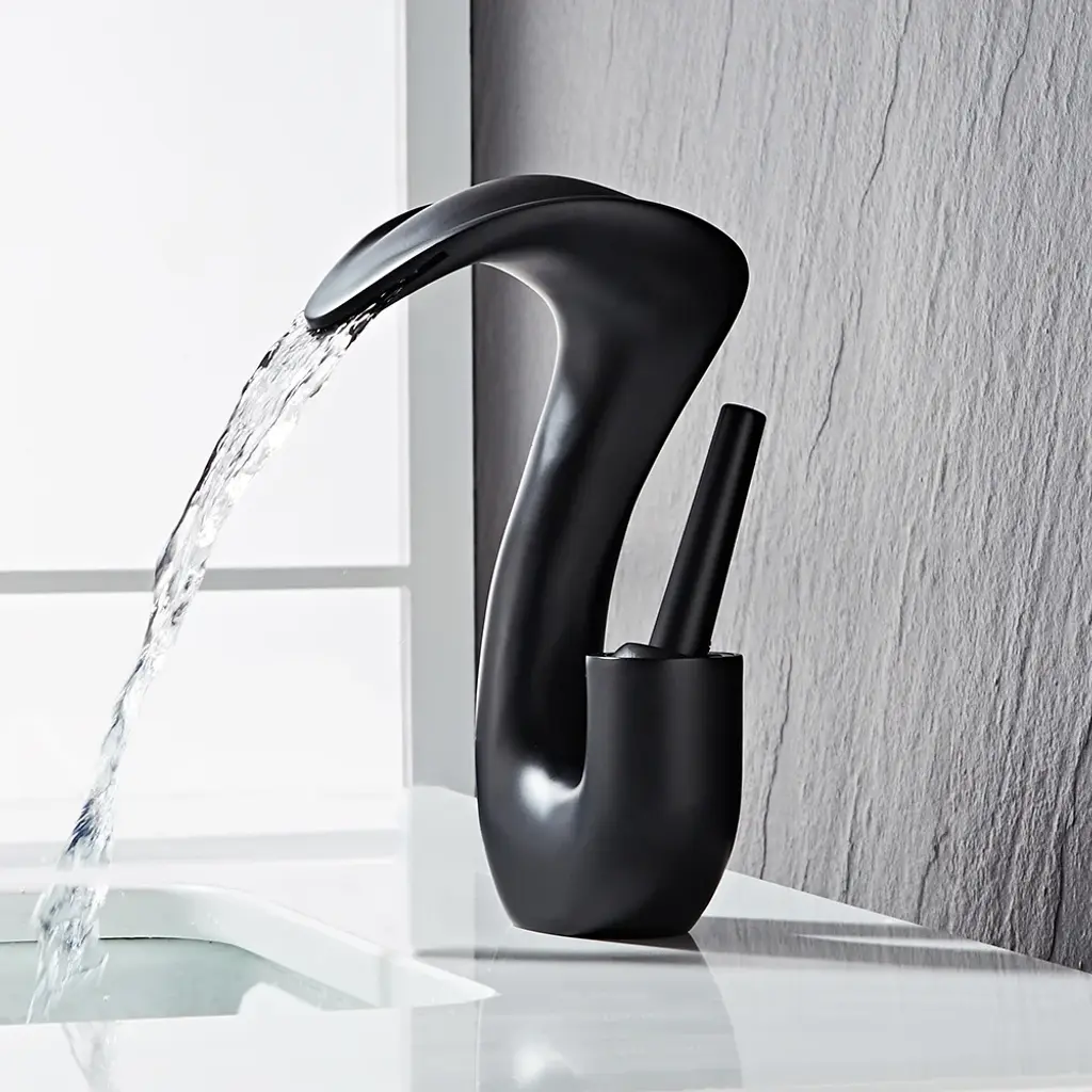 Modern Elegant Waterfall Bathroom Sink Faucet Single Handle Solid Brass In Black