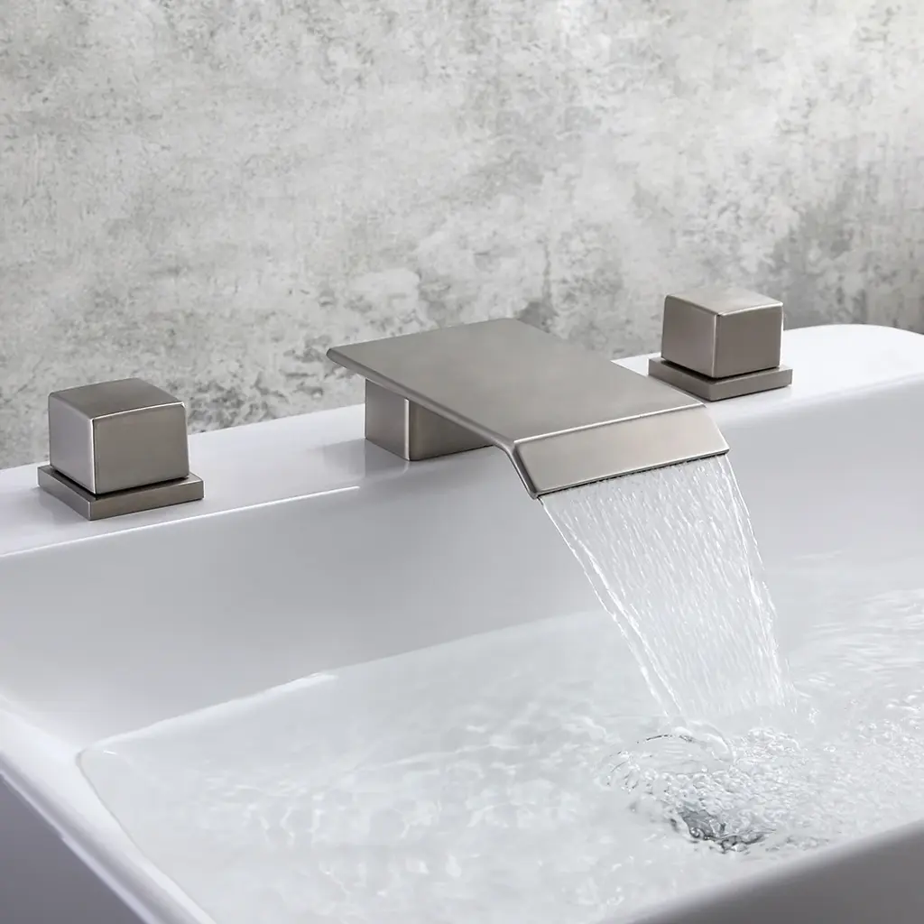 Introducing our modern class black waterfall bathroom faucet, where contemporary elegance meets durability and functionality. Crafted from lead-free solid brass, this faucet ensures both reliability and attractiveness for years to come. Its sleek design boasts a wide spout, creating a gentle cascade reminiscent of a serene waterfall, while the contemporary lever handle allows for precise control over water flow and temperature with ease. [Durable Construction] Constructed from solid brass, guaranteeing durability and reliability. [Premium Finish] Finished in high-quality, corrosion-resistant black, adding a touch of sophistication to any bathroom. [Waterfall Spout Design] Delivers a gentle cascade of water for a luxurious bathing experience. [Optimal Performance] Designed for standard water pressure; not suitable for low pressure. Minimum required water pressure: 0.05 MPa (0.5 bar).