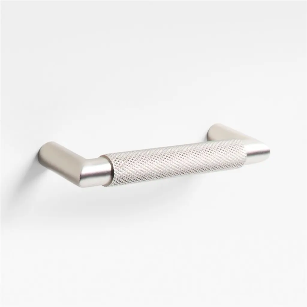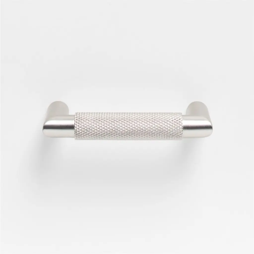 Sometimes it's the small things that pull a room together. That's why we've designed a hardware collection with modern silhouettes, clean lines and a touch of tradition to give your kitchen or bath that perfect finishing touch. Finished in brushed nickel, this knurled cabinet pull lends industrial chic to its minimalist design. The traditional metalworking technique creates a diamond-shaped texture that provides a sure gripbut we're more obsessed with the glam way the cut metal sparkles. The drawer pull instantly elevates kitchen drawers and bathroom cabinet doors, installing easily with the included hardware.