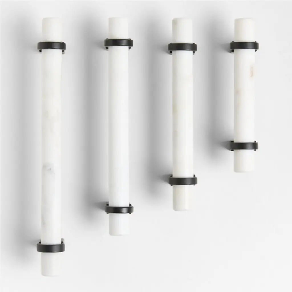 Sometimes it's the small things that pull a room together. That's why we've designed a hardware collection with modern silhouettes, clean lines and a touch of tradition to give your kitchen or bath that perfect finishing touch. Showcasing naturally beautiful white marble, our pull elevates a cabinet, dresser or vanity with an eye-catching organic accent. We love the way the matte black bracket cradles the slender marble rod, creating crisp contrast that's always modern, always classic. Our three-inch bar pull instantly dresses up a drawer or door anywhere in the home.