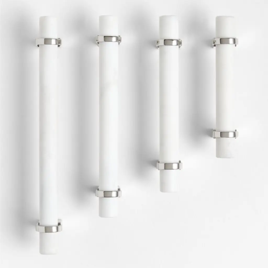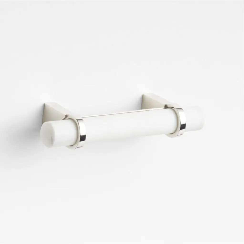 Sometimes it's the small things that pull a room together. That's why we've designed a hardware collection with modern silhouettes, clean lines and a touch of tradition to give your kitchen or bath that perfect finishing touch. Showcasing naturally beautiful white marble, our pull elevates a cabinet, dresser or vanity with an eye-catching organic accent. We love the way the polished chrome bracket cradles the slender marble rod in a sleek mix of materials. Our three-inch bar pull instantly dresses up drawers and doors throughout the home.