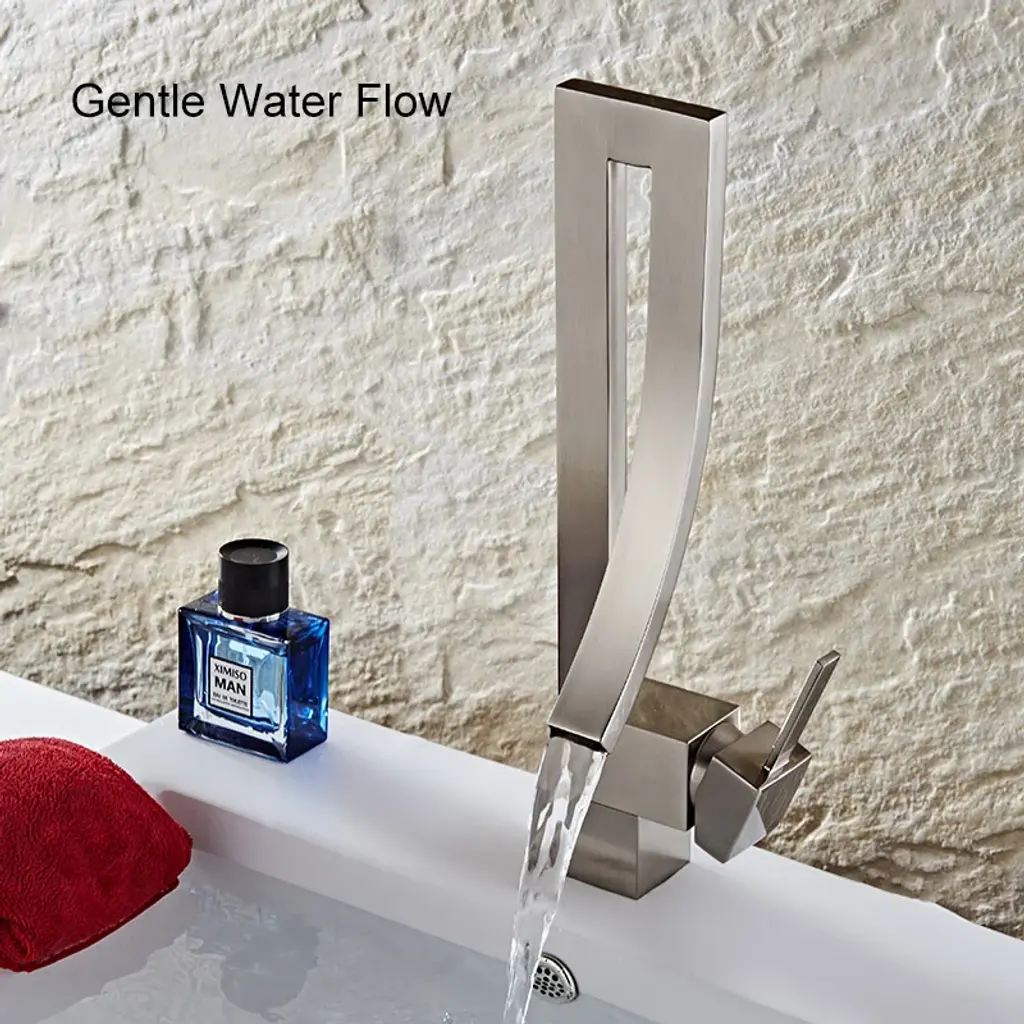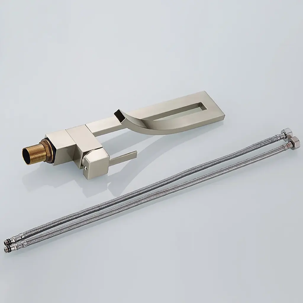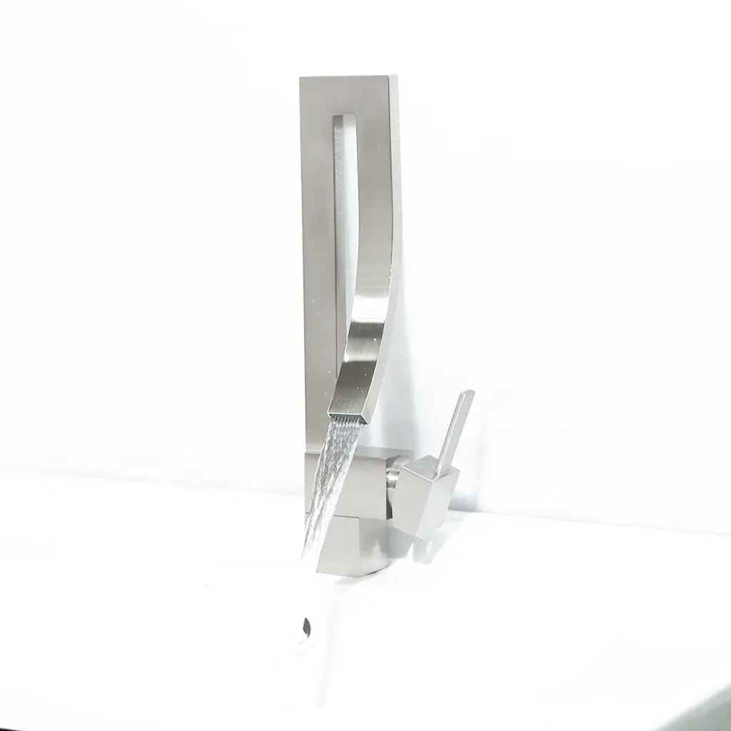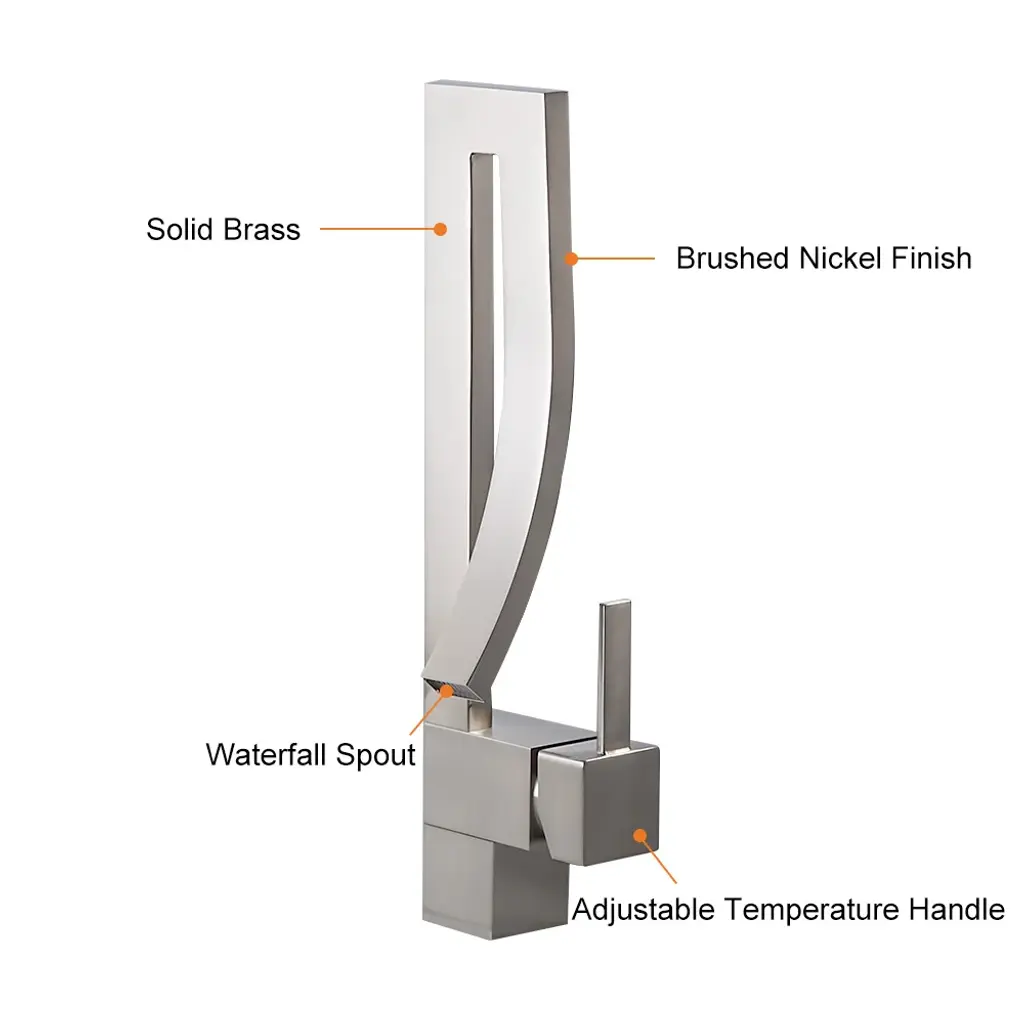 Modern Single Handle 1-Hole Brushed Nickel Bathroom Sink Faucet Waterfall Spout Brass