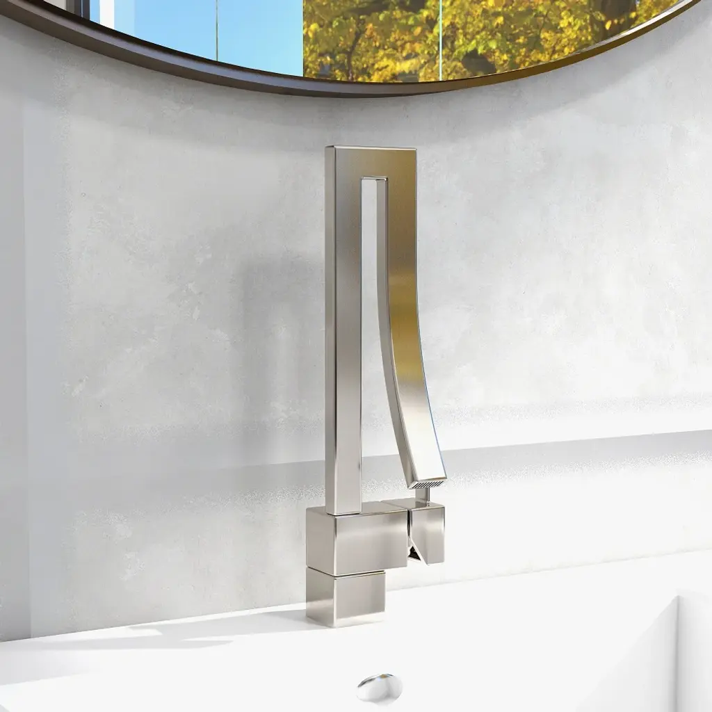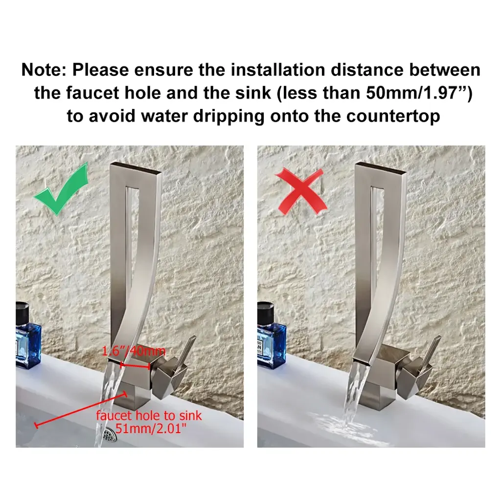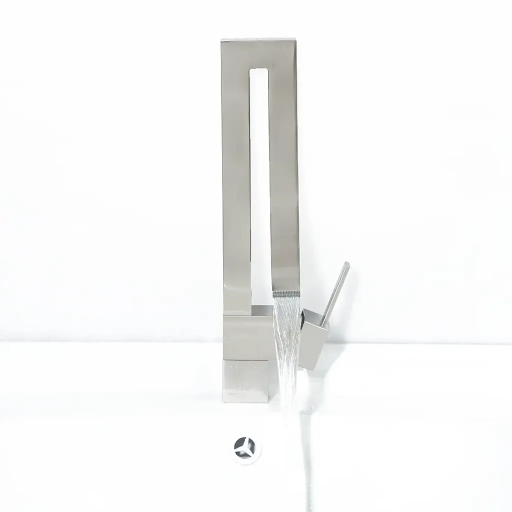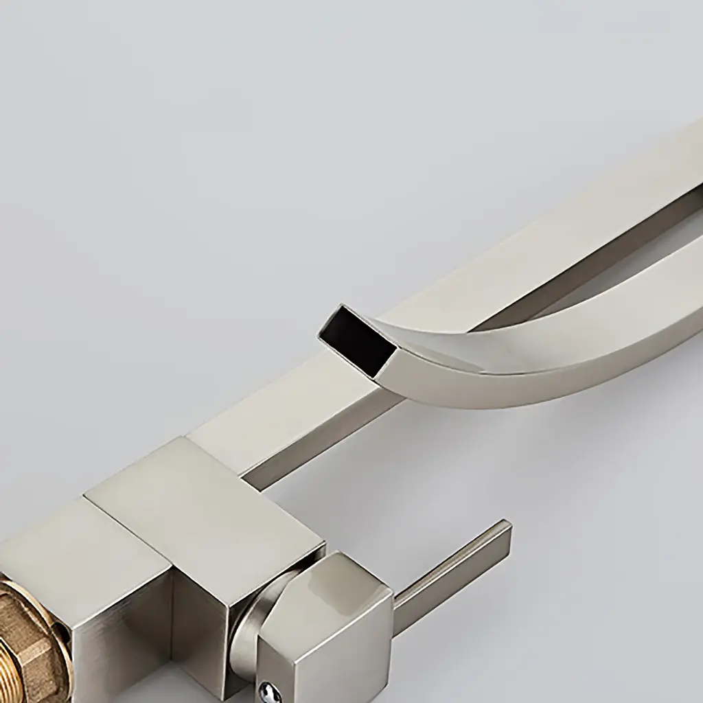Modern Single Handle 1-Hole Brushed Nickel Bathroom Sink Faucet Waterfall Spout Brass