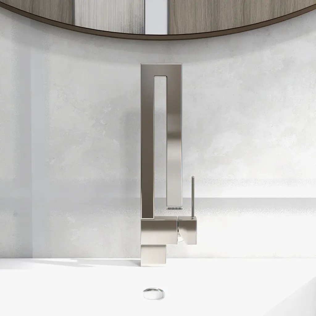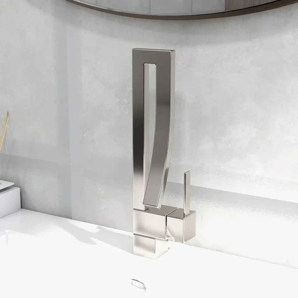Add sophistication to your bathroom with this striking sink faucet, featuring an angled design single-handle control that makes a statement. Constructed from brass and zinc alloy, this faucet is a fair deal in durability as much as it is in modern styling.