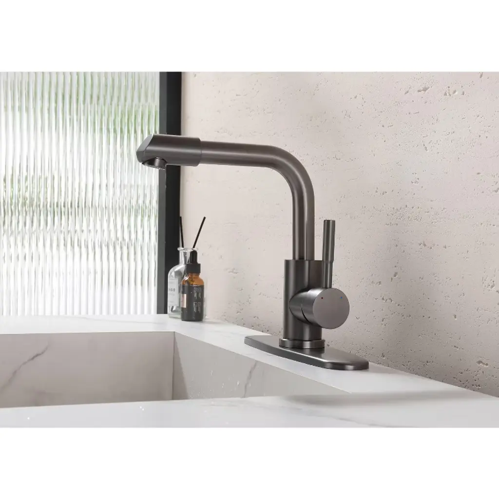 For a touch of artistic appeal and taste, this modern bathroom 1-hole sink faucet is second to none. Boasting a curvaceous arc design with clean lines and smoothly rounded edges, this unique faucet will add a fresh, new look with contemporary appeal to your bathroom. With a flat handle, it offers easy, precise control on hot and cold water flow. Made of solid brass construction and plated in premium finish, it resists corrosion and tarnishing for an everlasting sheen and beauty. A captivating addition that takes your bathroom to the next level.