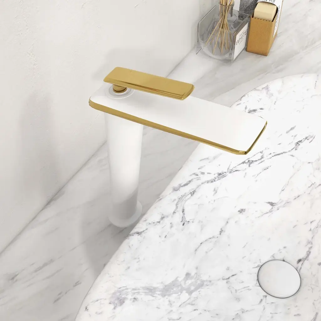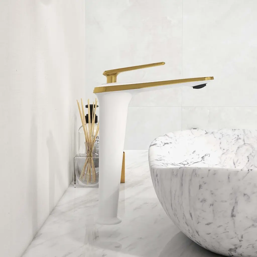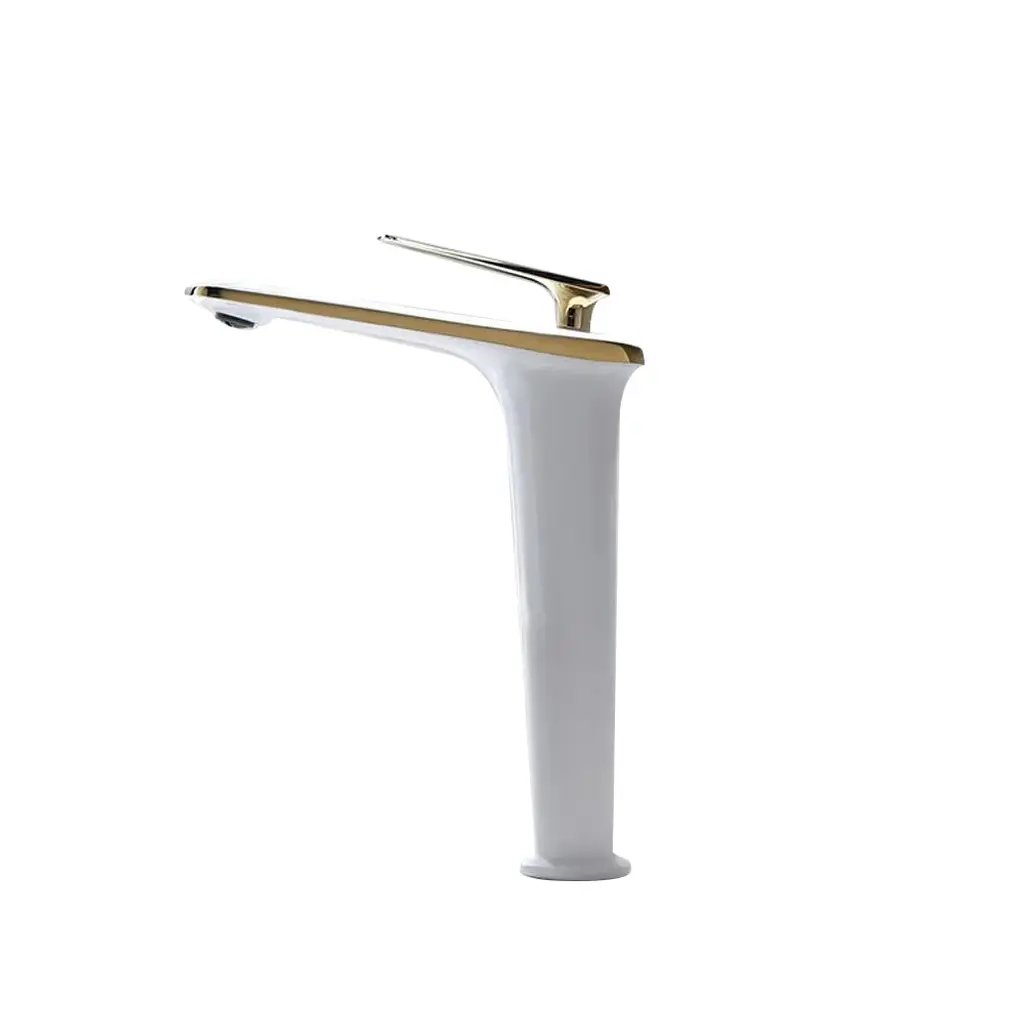 Modern White And Gold Single Hole Single Handle Brass Vessel Bathroom Sink Faucet