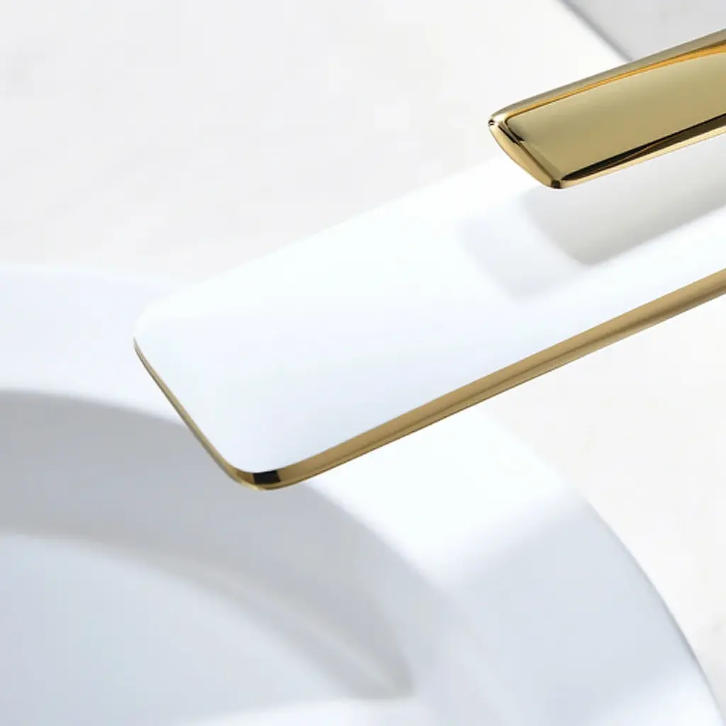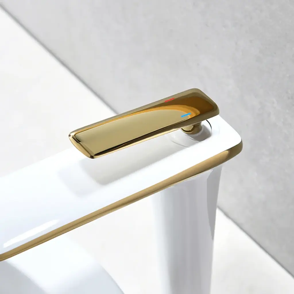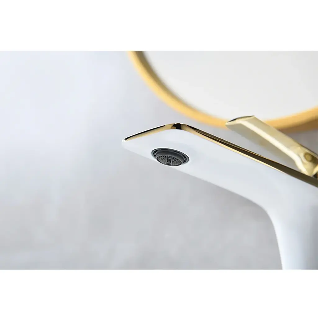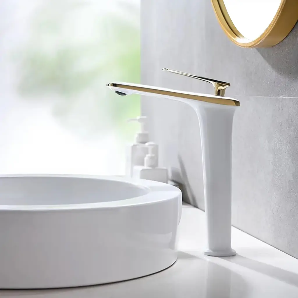 Modern White And Gold Single Hole Single Handle Brass Vessel Bathroom Sink Faucet