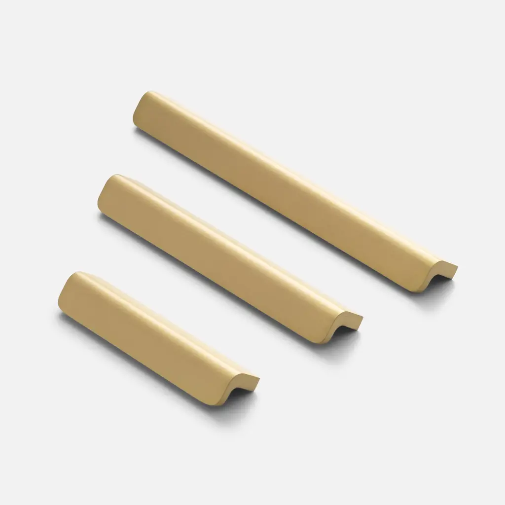 Made of solid brass, the Moore Pull makes a subtle statement in any bathroom. Soft curves and a scaled-up size add impact and movement, while multiple mounting options allow it to be installed on drawers with pre-existing holes.