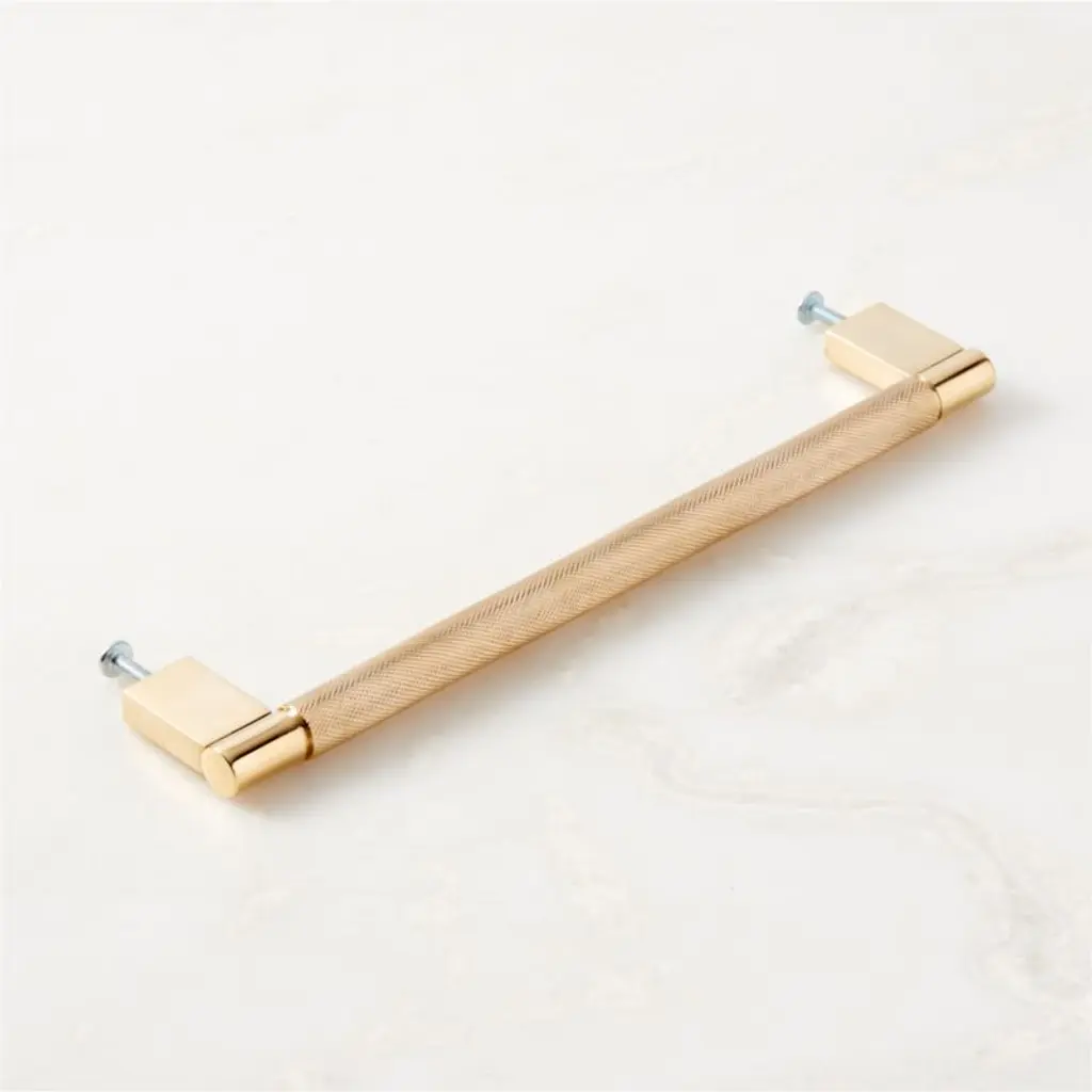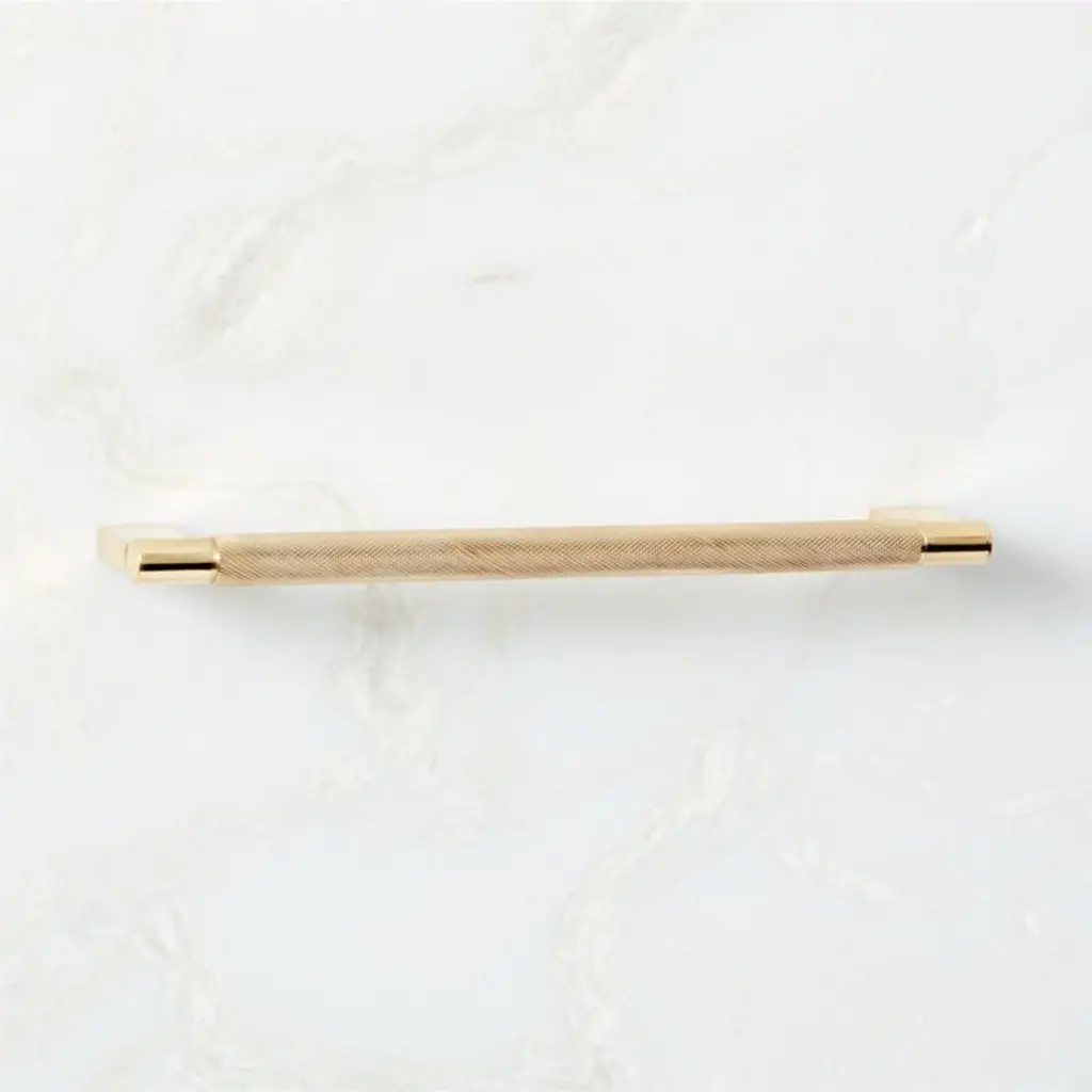 Nicolo Knurled Unlacquered Brass Cabinet Handle 8"