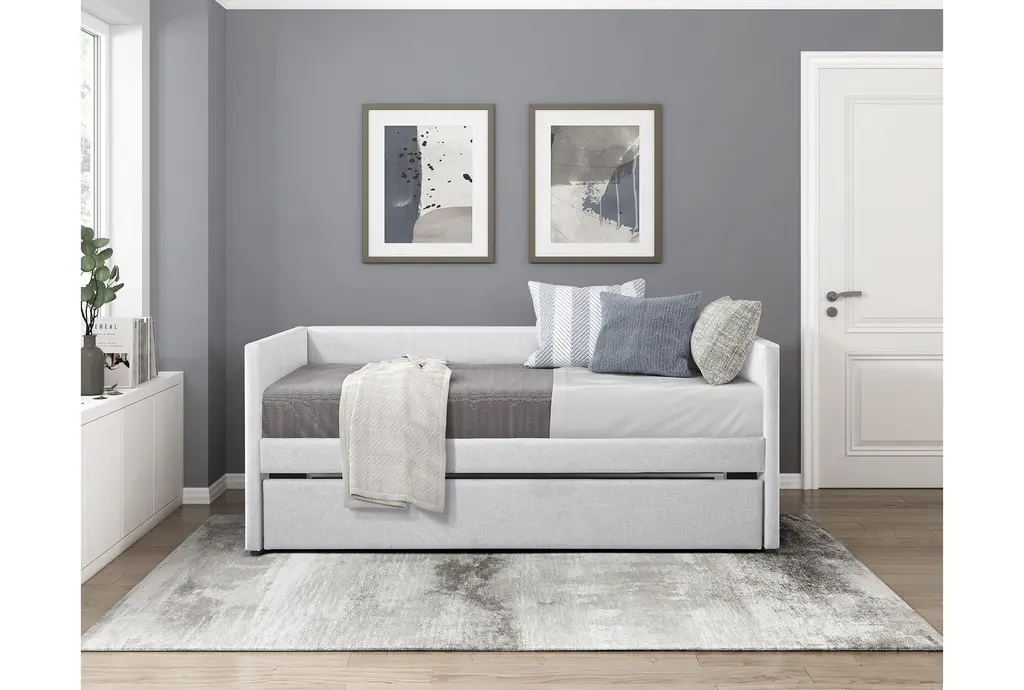 Noa Light Grey Twin Upholstered Daybed With Pull-Out Twin Trundle