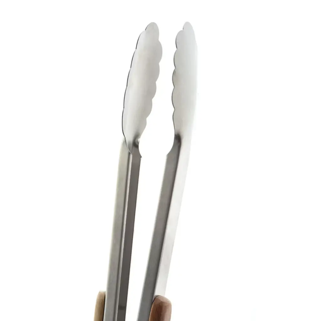 The Norpro 18-Inch BBQ Tongs with Acacia Handle are perfect for grilling with comfort and control. The extra-long design keeps hands away from the heat, while the scalloped stainless steel tips grip food securely. With a durable acacia wood handle, these tongs are ideal for flipping meats, turning veggies, and managing food on the grill.