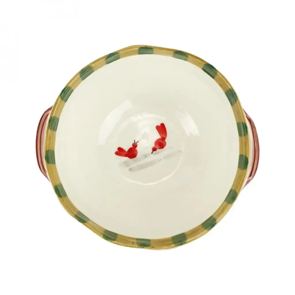 VIETRI’s signature holiday collection is created from maestro artisan Alessandro Taddei’s childhood memories of stories his mother used to read to him about Babbo Natale, Italy’s Santa Claus. Alessandro relays the stories through his whimsical designs on the Old St. Nick Handled Bowl with Bird Watcher, providing us a glimpse into Old St. Nick’s daily outdoor adventures leading up to preparations for each holiday season. Since 1983, Vietri has specialized exclusively in Italian handcrafted ceramics, stainless and pewter flatware, mouth blown glassware, lamps, urns and planters. Families of artisans with 3 or 4 generations of history create these special pieces using centuries-old techniques. The subtle color from a paintbrush and the curving stroke of the artist's hand are never repeated in quite the same way, making each piece truly unique.