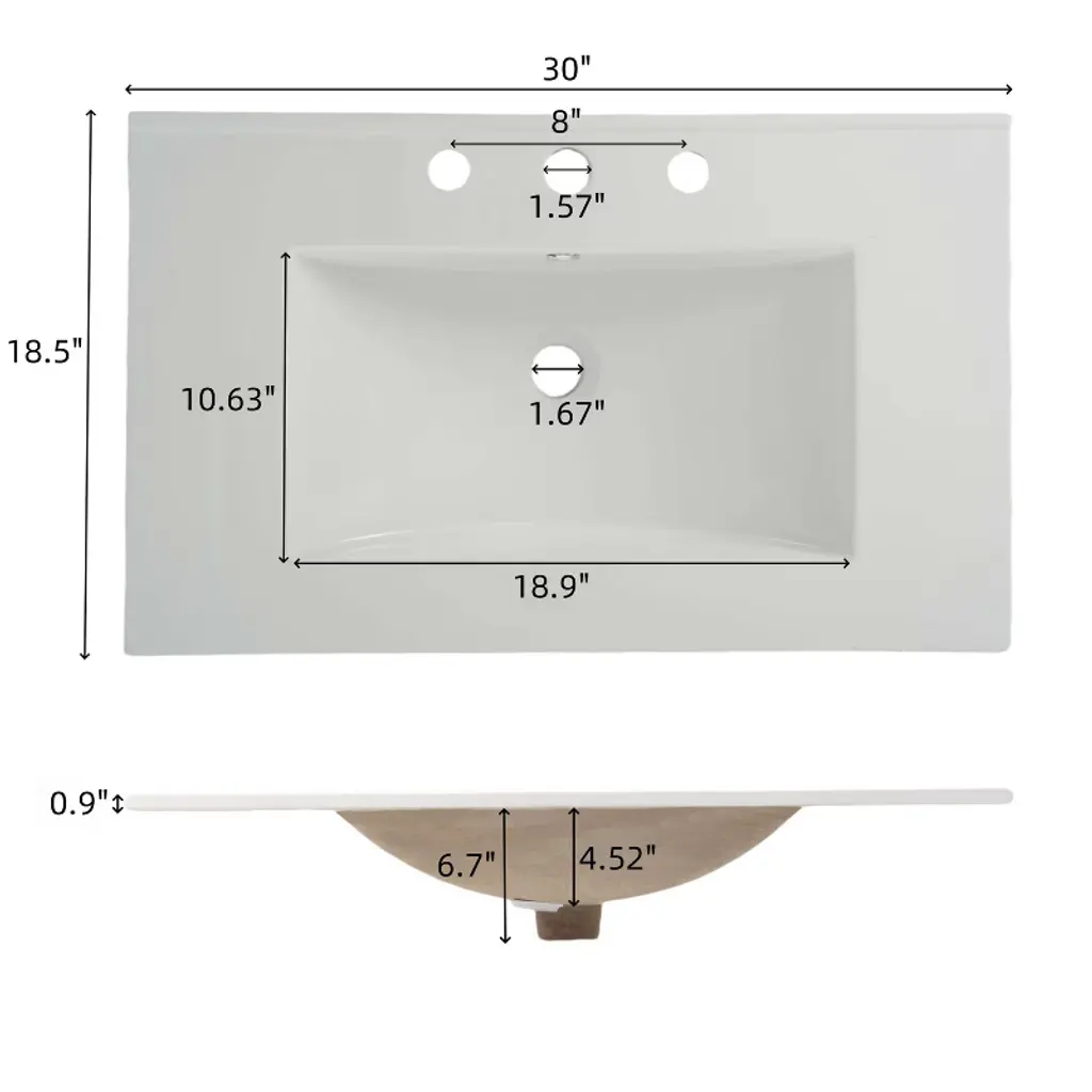 Upgrade your bathroom with this 30" freestanding vanity featuring a sleek ceramic sink and two full-extension soft-close drawers. The modern 45° handle design adds elegance, while the undermount drawer slides ensure quiet operation. Crafted from natural wood, this vanity combines style and functionality for a clutter-free space! #BathroomVanity #ModernDesign #HomeUpgrade